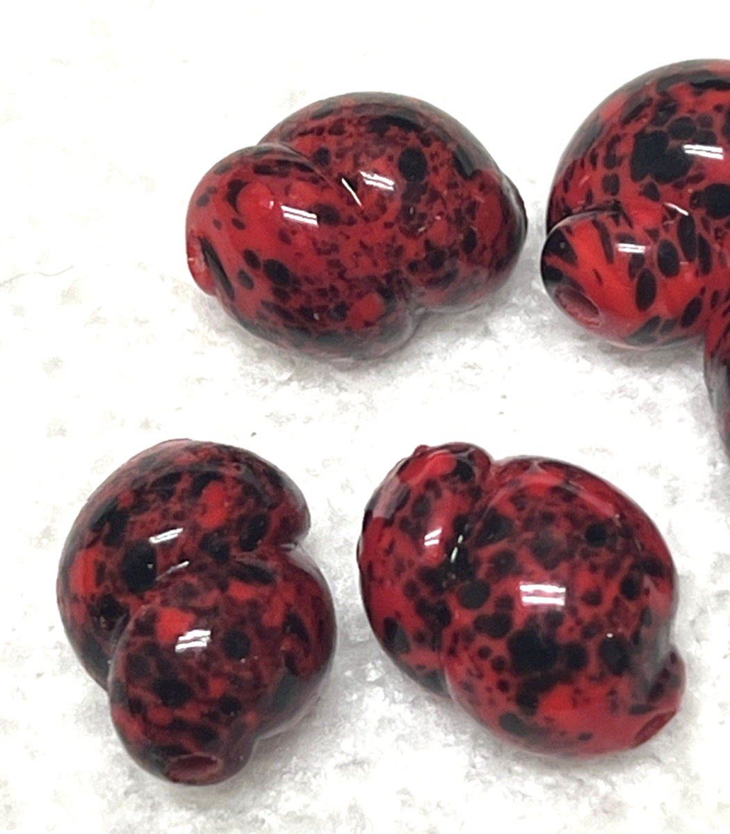5 Vintage Art Glass Beads Red w Black Speckles Snail Twisty 3/4L x 1/2W