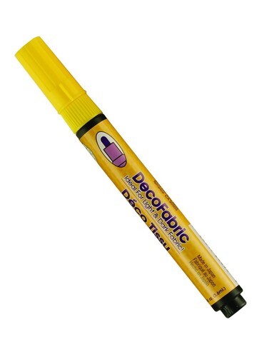 UCHIDA Deco Fabric Marker 2 pack of Black. Deco Fabric markers are great for dark colored fabrics. It is water resistant when dry. The fine point tip is great for details. Specifications Water Resistant Contains color pigments that glow in the dark Permanent when dry Acid free Odorless Lightfast Apply to prewashed fabrics Shake well before each use. Test on inconspicuous area first. Dry flat overnight. Heat set with iron according to fabrics ironing temperature recommendations. Wash/dry on delicate cycle. Use mild detergent Keep capped when not in use. Uses Good for marking, drawing and writing on cotton fabrics. 2 Markers in package. Color: Black. CHK-22302B