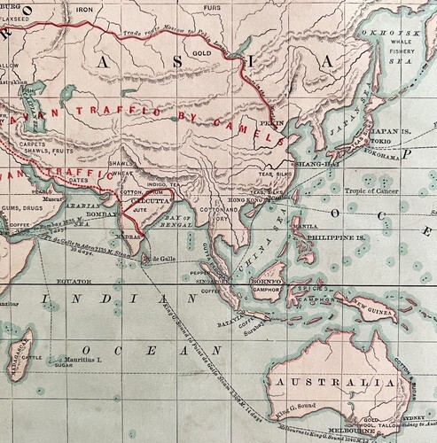1879 Trade Route Map Nautical Caravan Victorian Geography 1st Edition DWAA9