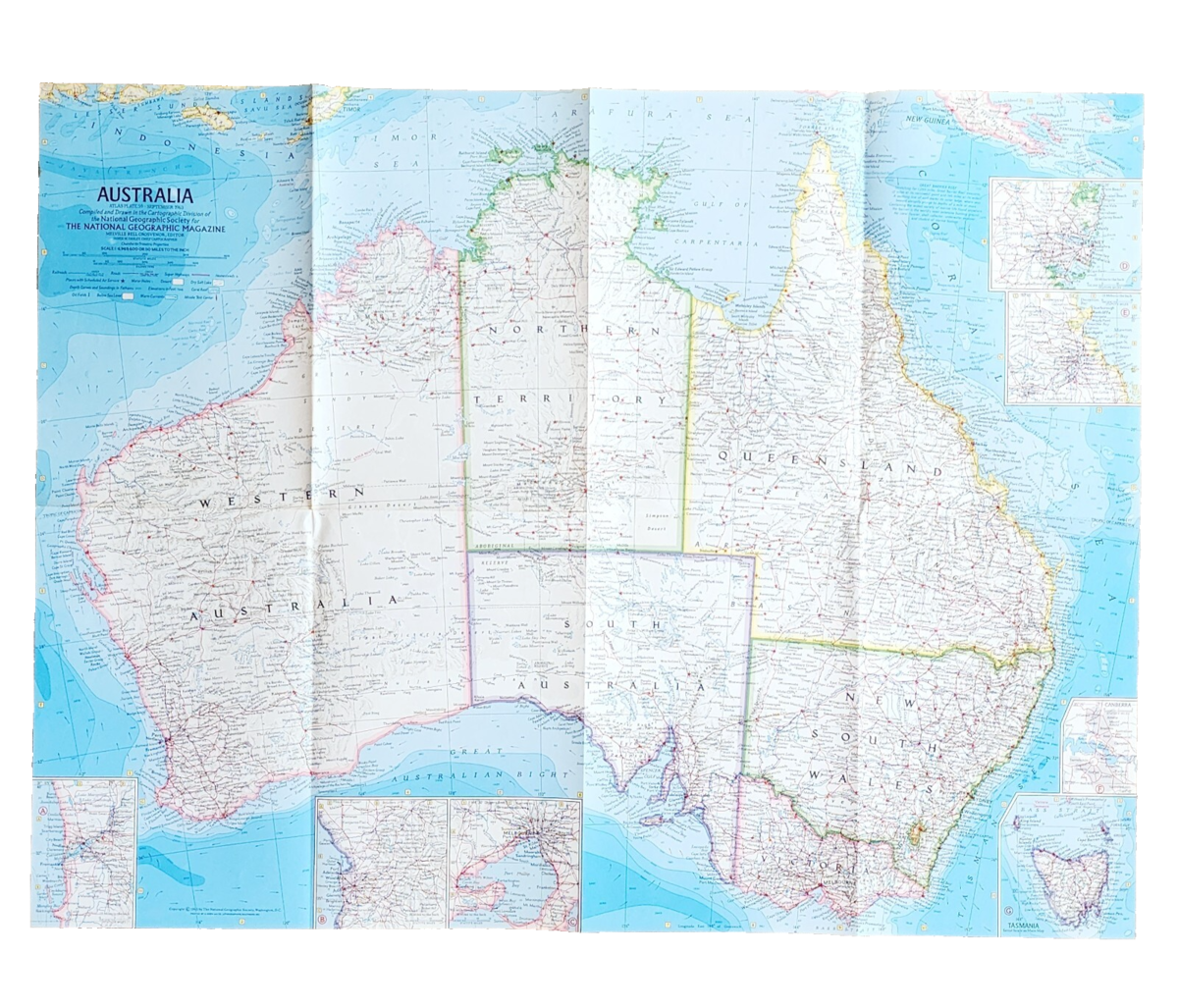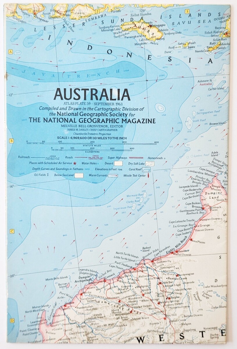 1963 Australia Continent Map National Geographic Antique 24.75 x 19" F13H