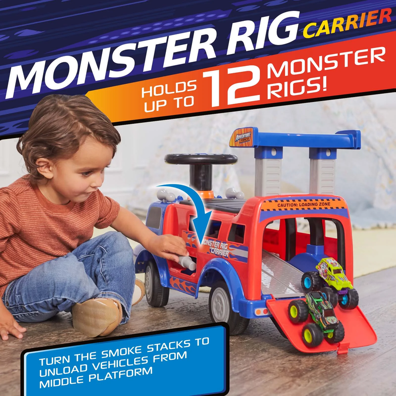 Adventure Force Monster Rig Carrier Transportation Ride on for Kids 1-3 Years Old, Supports 44Lbs