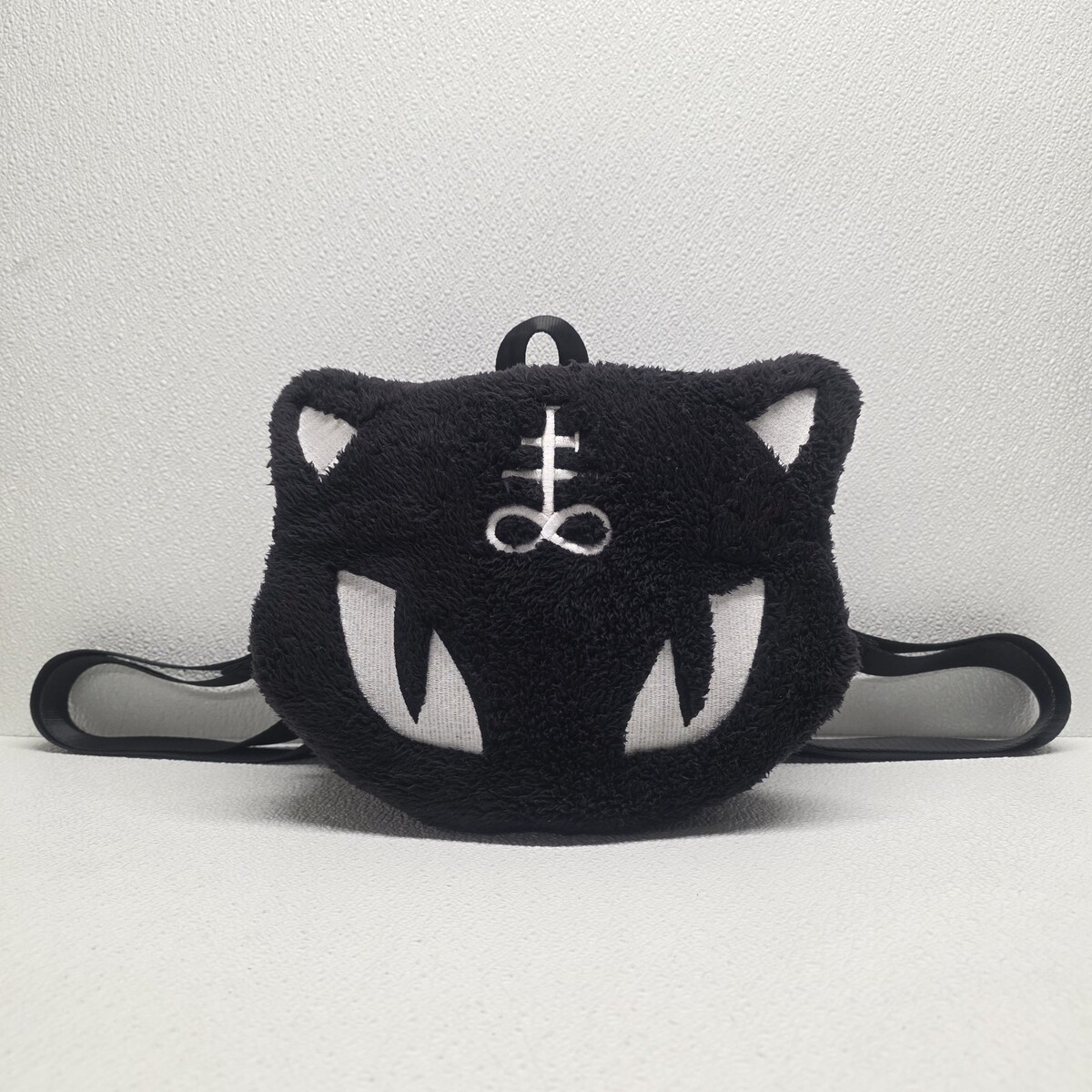 Killstar Black Cat Lucipurr White Embroidered Eyes Plush Backpack Bag