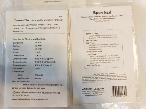 Terry Atkinson Designs Square Meal Table Runner 2002 17.5"x 50"