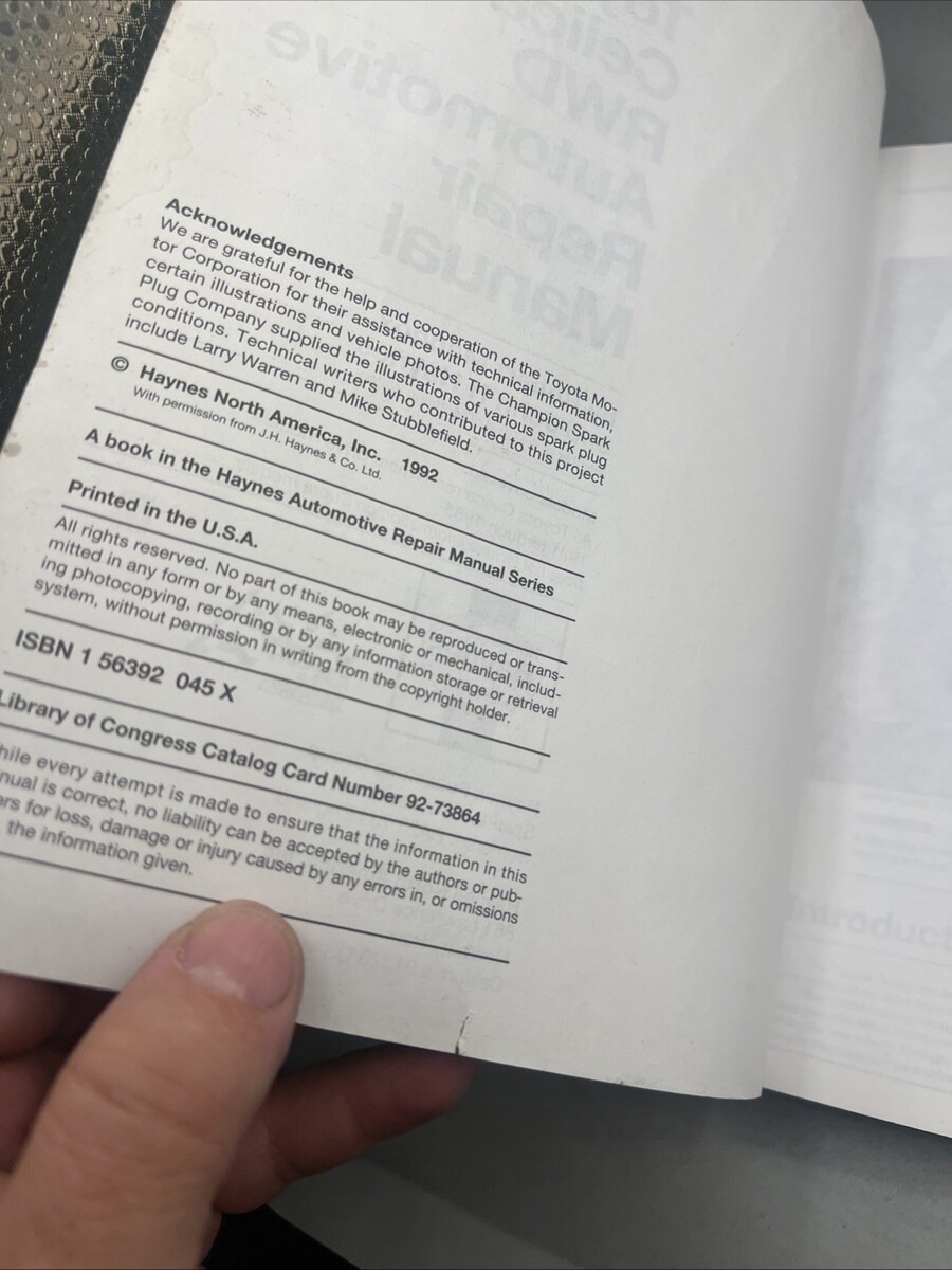 Haynes Toyota Celica Repair Manual 1971-1985 Rear Wheel Drive Models 935 Vintage