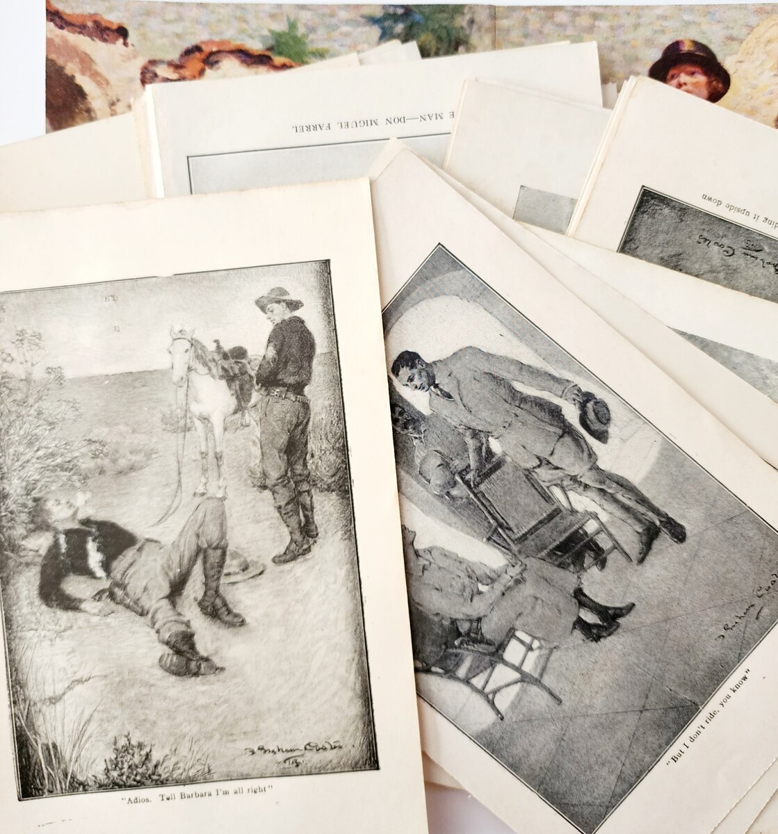 1940s Lot Of 34 Book Plate Prints Western Romance Vintage Art Ephemera DWW12B
