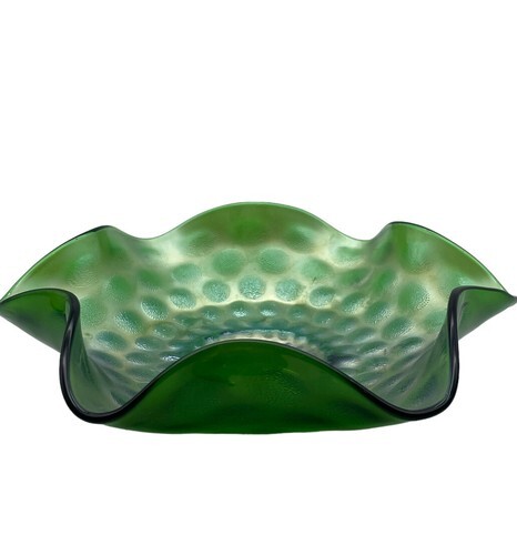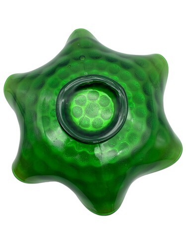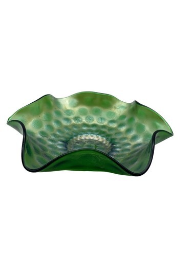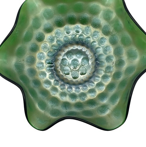 Vintage Westmoreland Pearly Dots Compote Bowl Green Ruffled Carnival Glass READ