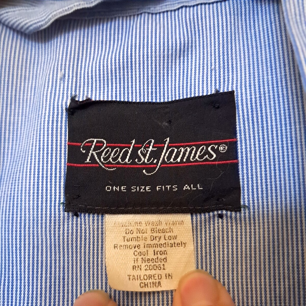 Vintage Reed St. James men's robe cotton polyester white blue stripe one size