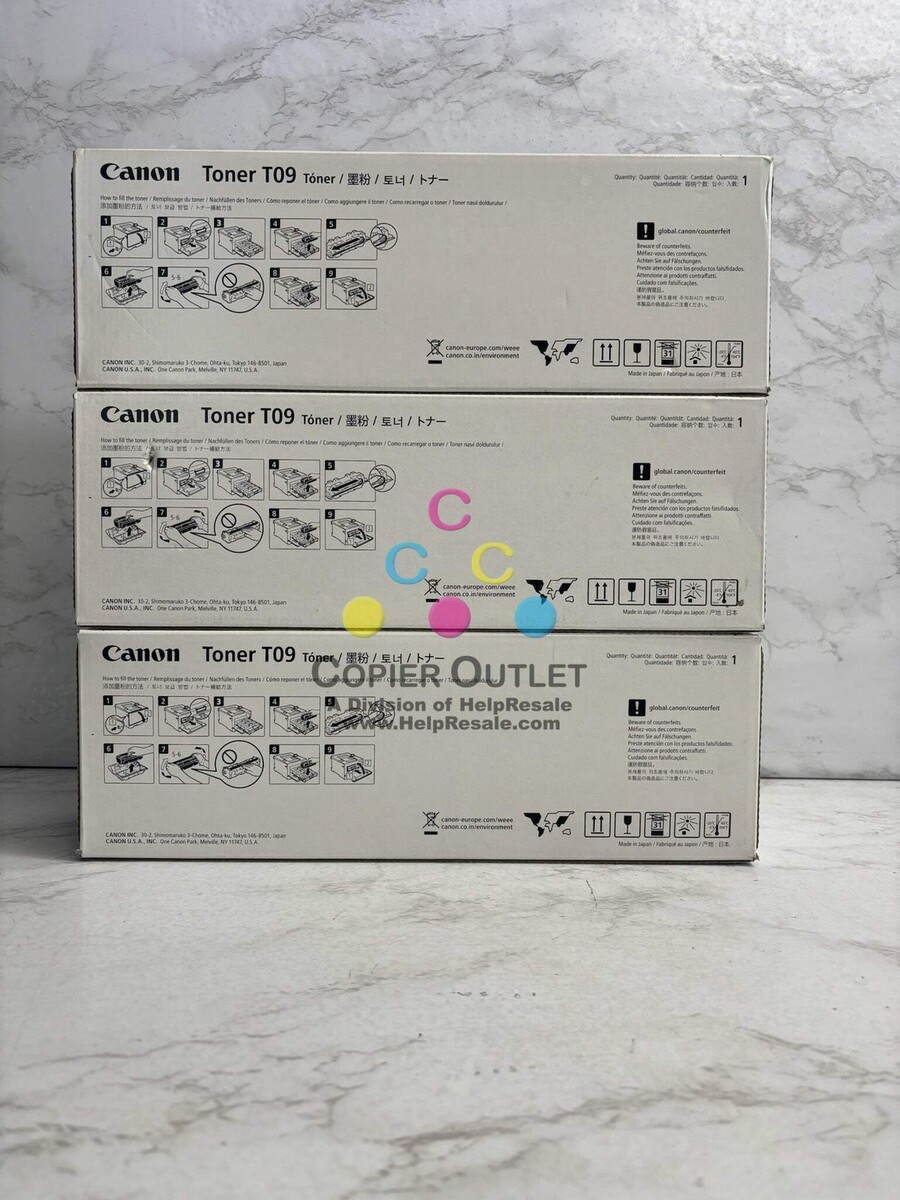 Lot Of 3 Genuine Canon imageCLASS T09 Magenta Yellow Toner (No Cyan Black) (Other Part Numbers : 3017C005AA, 3018C005AA) New - Cosmetic Box (Yellow) ***Please See Reference Photos*** Same Day Shipping FOR: imageCLASS X MF1127 c, LBP-1127 c Listed by: Renee (Sales Team) ?More work than you want, less than you fear.?~Coach Tony (A positive moment brought to you by Help Resale) Copier Outlet (A Division of Help Resale) Copier Outlet was established in 1993. We buy and sell both domestically and internationally and have wide assortment of copiers, consumable and accessories of all popular brands. All of our copiers are in house and available for your inspection. They all have been tested and rated for functions, cosmetics and overall appearance. Our consumable and accessories selections include toners, imaging units, developers and copier parts such as fax board, fixing unit, fuser unit, roller, cleaning brush, drum blades and etc. For more detailed information on our copiers, consumables and accessories, please feel free to give us a call. We are more than happy to assist you with the pricing and guide you to find the copiers, consumable and accessories you wish to buy. Best Regards, Copier Outlet Sales Team Monday - Friday: 9:00 am to 5:00 pm (PST) Copier Outlet Promo Video - YouTube Video will open in a new windowUsing the App? Paste link into a browser window: [isdntekvideo] All product and company names are trademarks TM or registered trademarks of their respective holders. Use of them does not imply any affiliation with or endorsement by them.