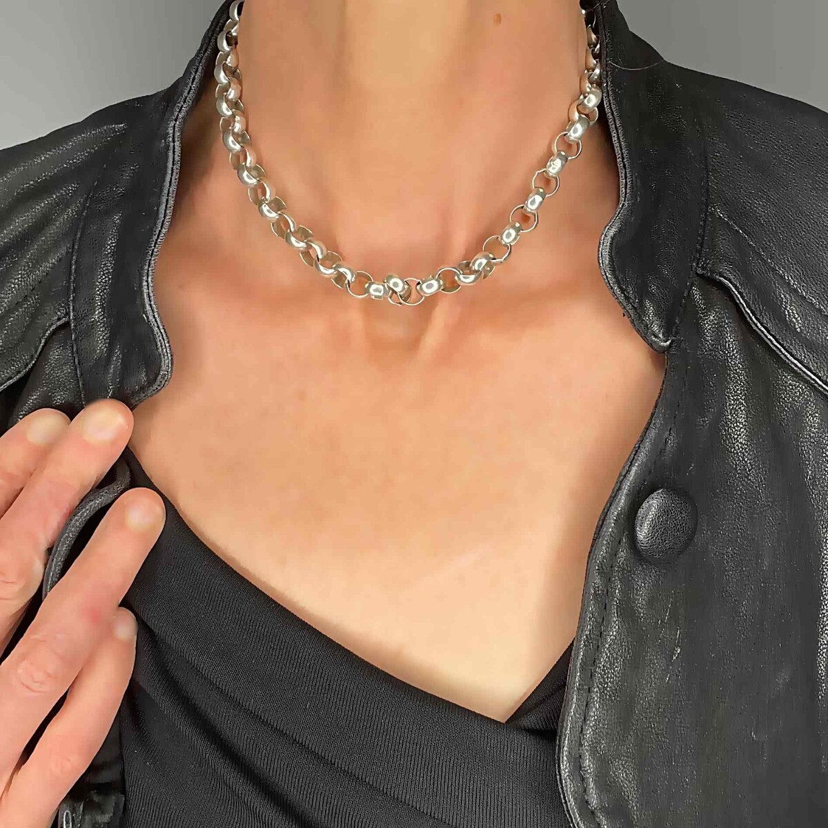 Vintage Chunky Sterling Silver Bolt Ring Clasp Chain Choker, Make OFFeR!