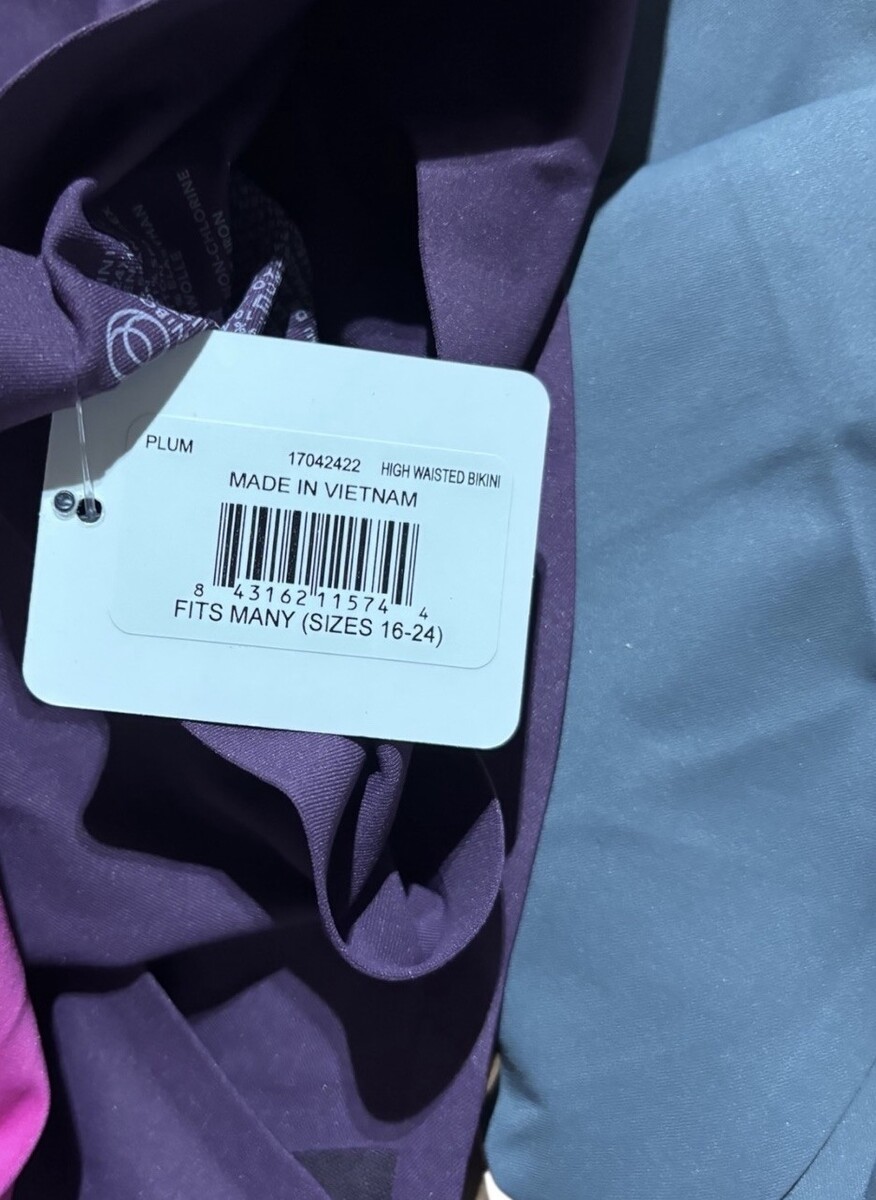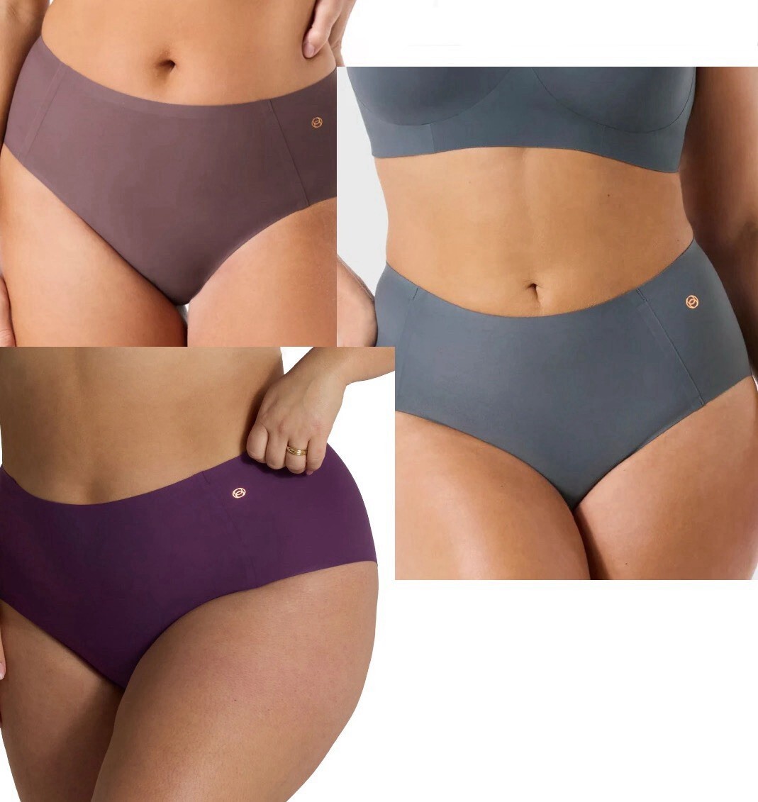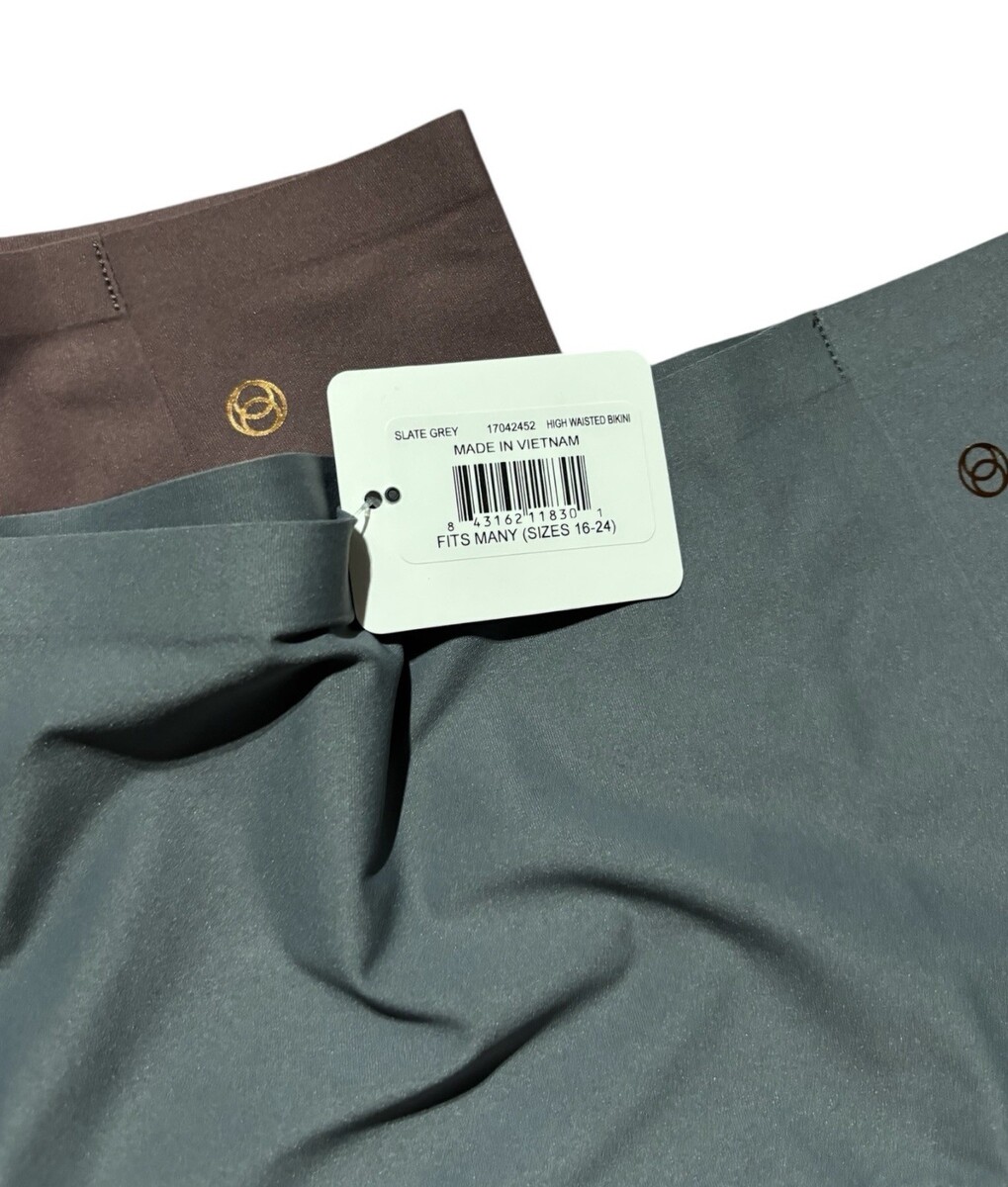 (3) Evelyn & Bobbie High-Waisted Retro Bikini Panty 1704 Plum Grey Thistle 16-24