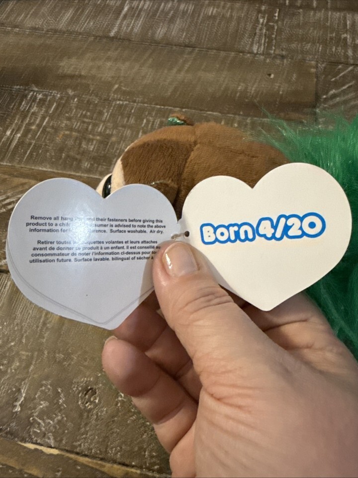 The New Fuzzee Tails Bonzai Monkey 5? Plushie in green is a adorable stuffed animal perfect for birthdays. This mini plushie from the Fuzzee Tails brand features a washable surface, making it easy to keep clean and safe for young children. With its cute monkey design and recommended age range of 0 and up (when tags are removed), this plushie is suitable for a variety of age levels, from infants to teenagers and even adults who are fans of the Fuzzee Tails character family. Made in China, this plushie is sure to delight any recipient with its cuddly and playful design.
