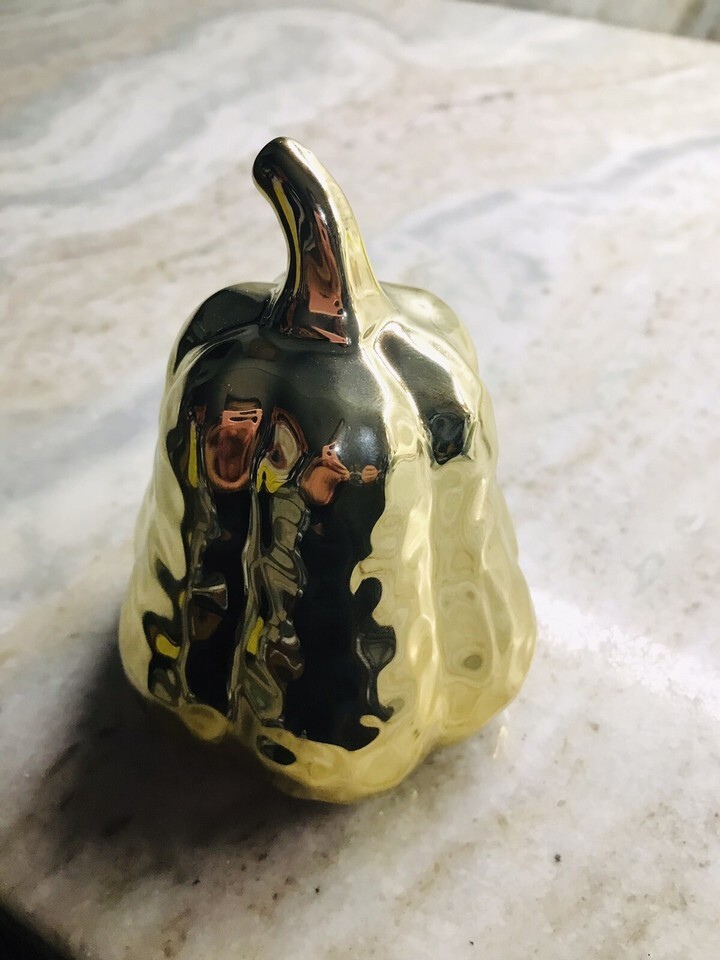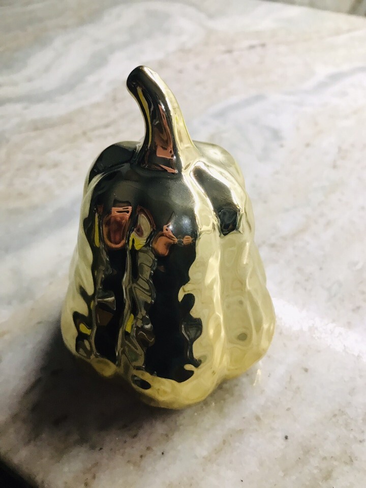 Sophisticated Ceramic Pumpkin Sculpture Decorative Gold 4” W 6” H