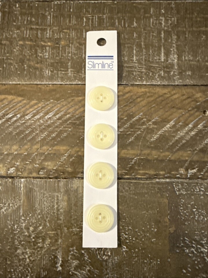 The SlimLine Buttons 4 Piece 11/16? in off white color are made of plastic material, perfect for various crafting and sewing projects. These buttons offer a sleek and slim design, making them versatile for adding closures and connectors to your creations. Their size and material make them ideal for a wide range of projects, adding a stylish touch to any design.