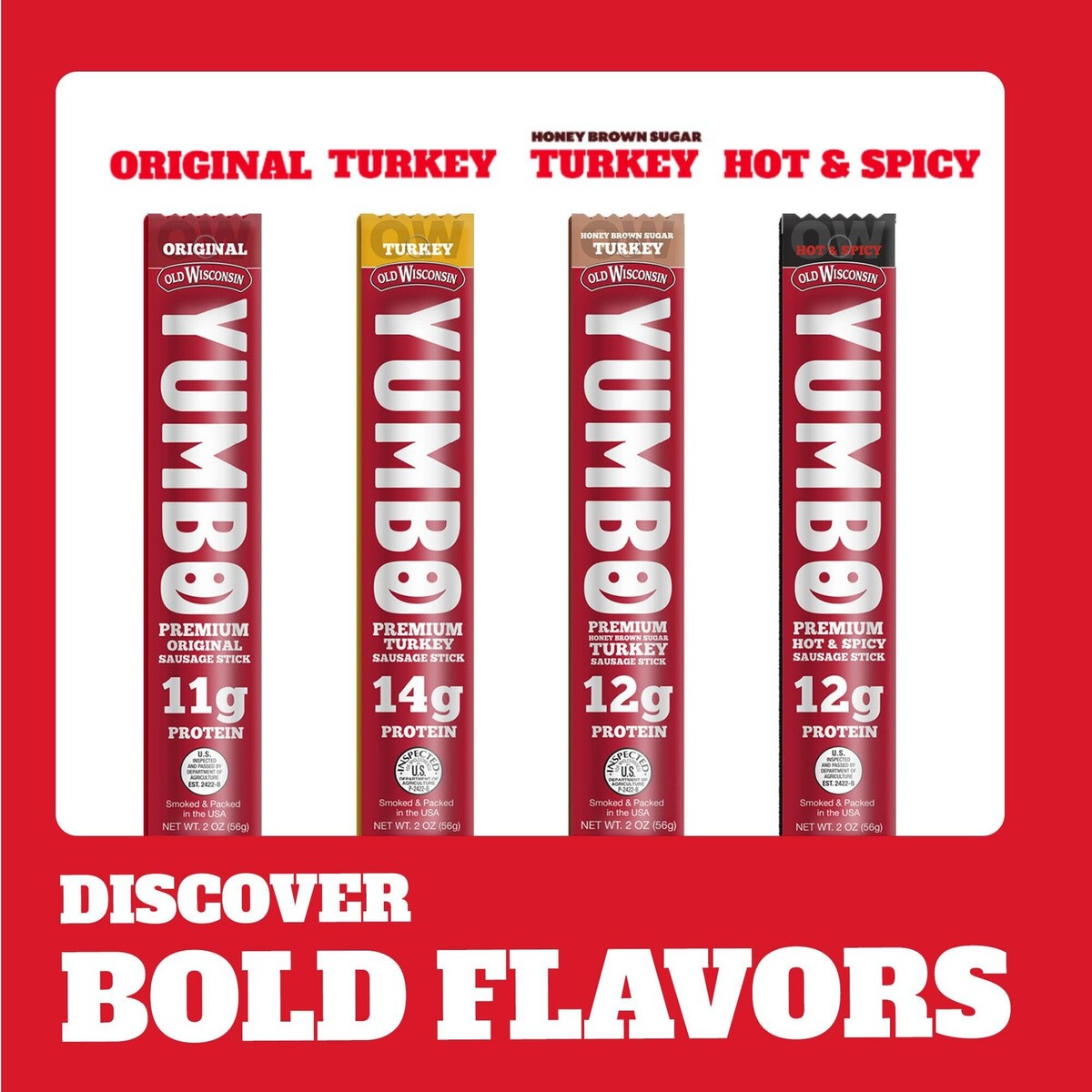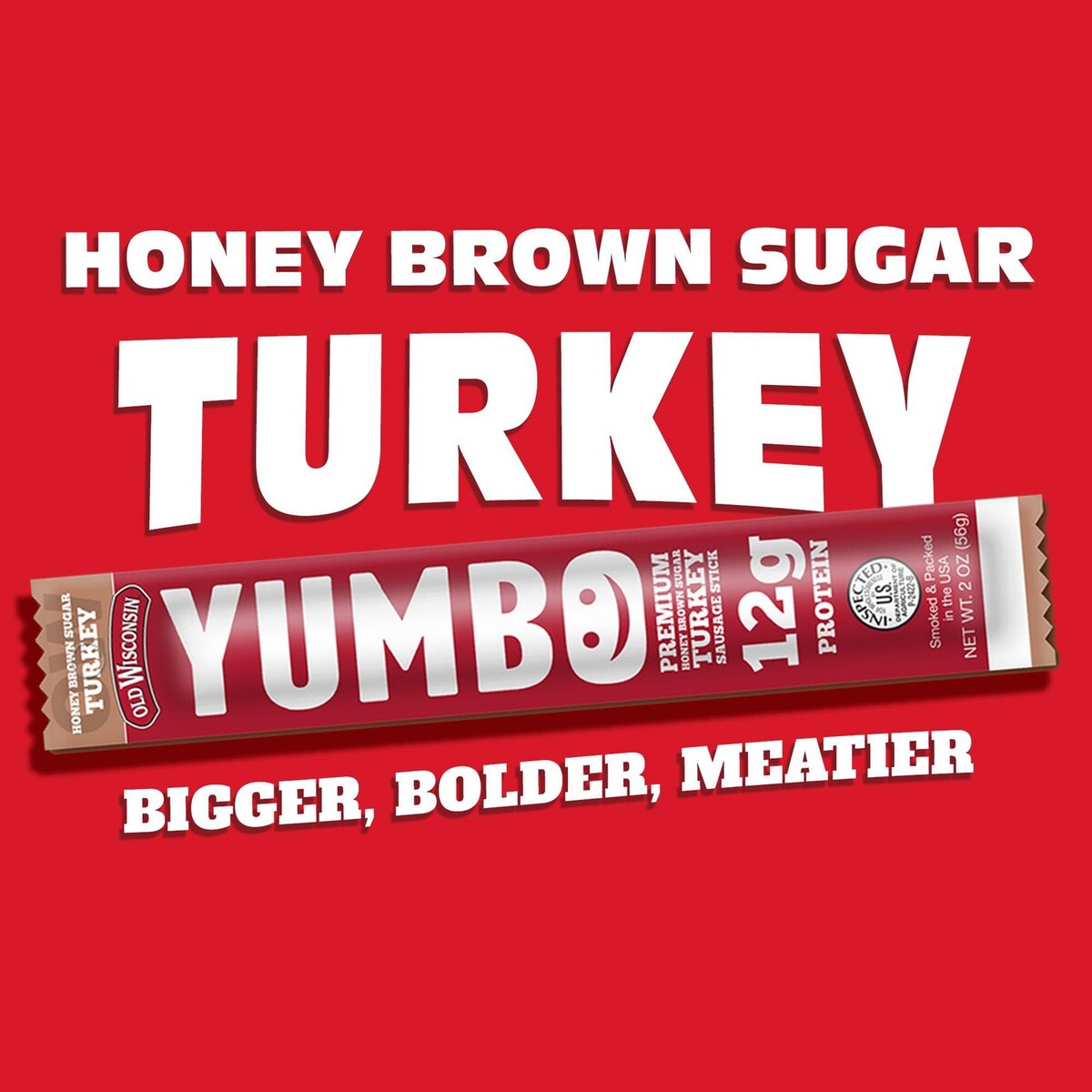 Expiration Date of 11/9/25 ? YUMBO from Old Wisconsin is an individually wrapped, oversized, 2oz summer sausage deli stick ? YUMBO uses only premium cuts of beef, pork, and turkey and other select ingredients ? Slow-smoked over real hardwoods and perfectly seasoned, YUMBO is our best tasting deli stick yet! ? YUMBO deli sticks come in Original, Turkey, Hot Spicy, and Honey Brown Sugar Turkey flavors ? The honey brown sugar turkey flavor offers 12g protein per serving