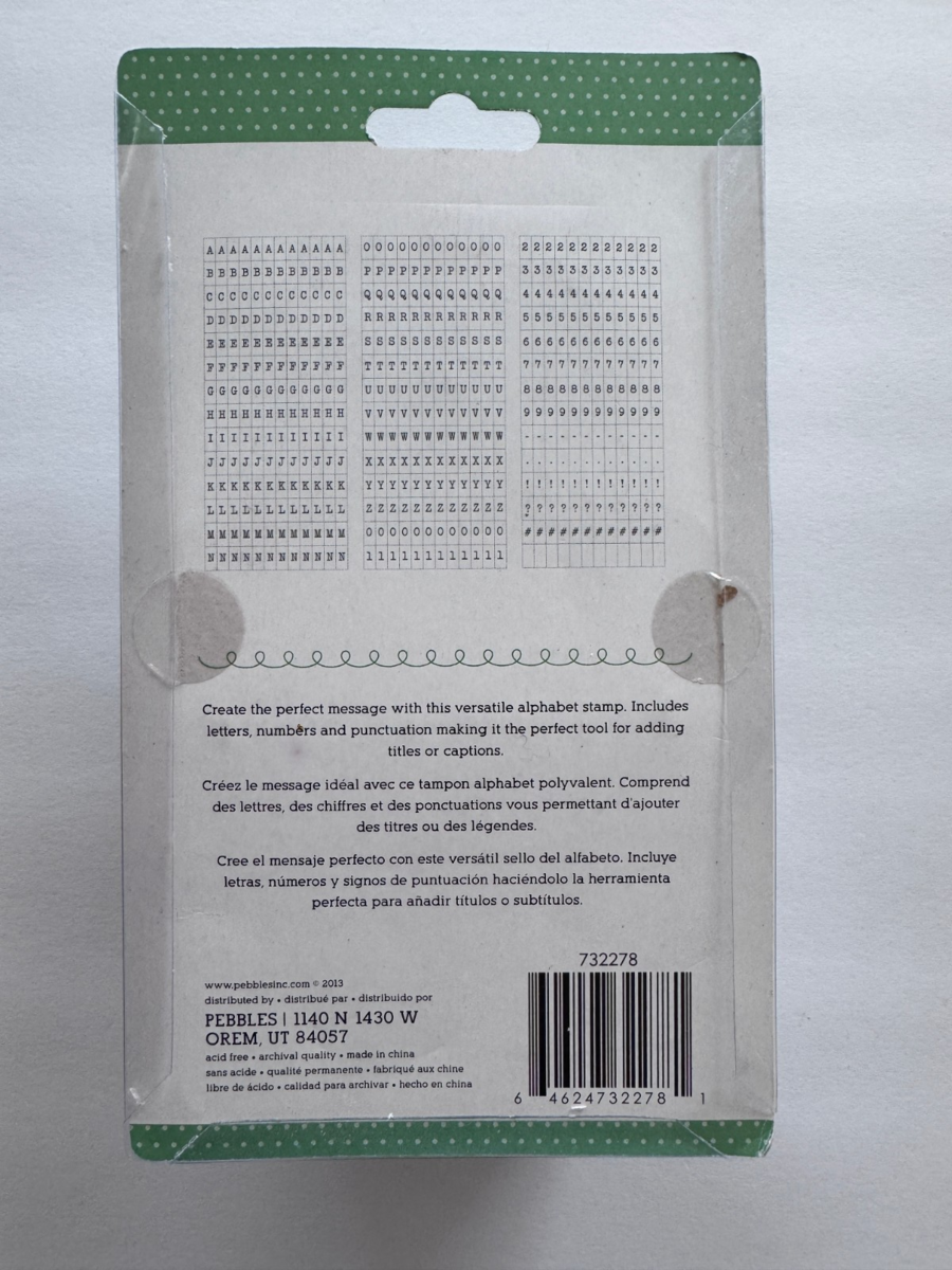 Pebbles 12 Line Roller Alphabet Letters Numbers Punctuation Stamp NEW