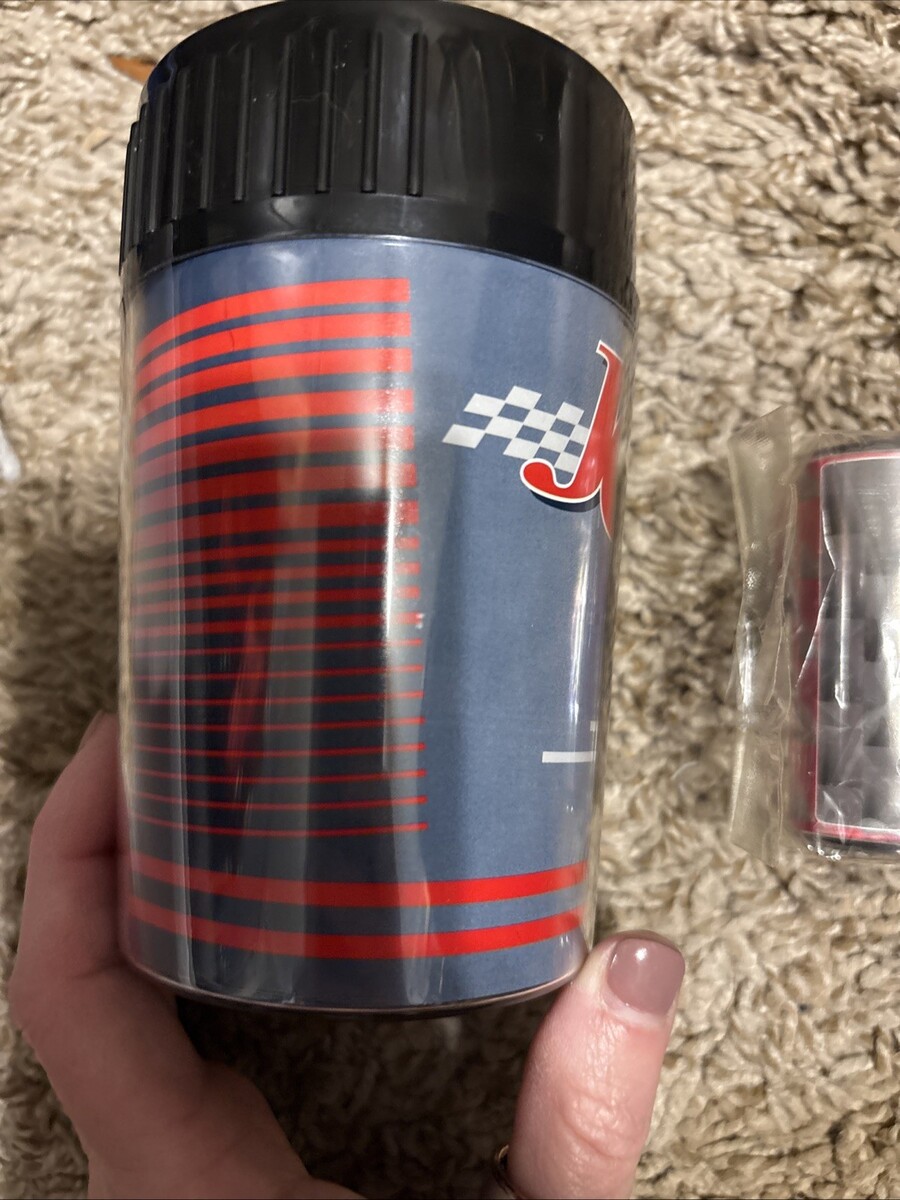 The product is a vintage Nascar Jeff Gordon disposable camera film and cup. This collectible item celebrates the auto racing legend Jeff Gordon, known for his iconic NASCAR career. The disposable camera film adds a nostalgic touch to this memorabilia piece, making it a unique and interesting addition to any sports memorabilia collection.