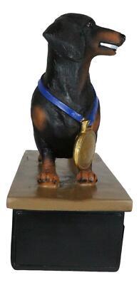 Award Trophy Dachshund Puppy Dog With Gold Medal Standing On Stage Figurine