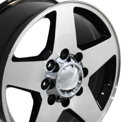 You can now have these great looking 8x165 bolt pattern Black And Machine Aluminum Wheels on your 2001 through 2010 GMC 2500, 3500 single rear wheel Sierra, or 2001 through 2013 Yukon 2500. This set also includes 32 factory polished, stainless GM lug nuts!