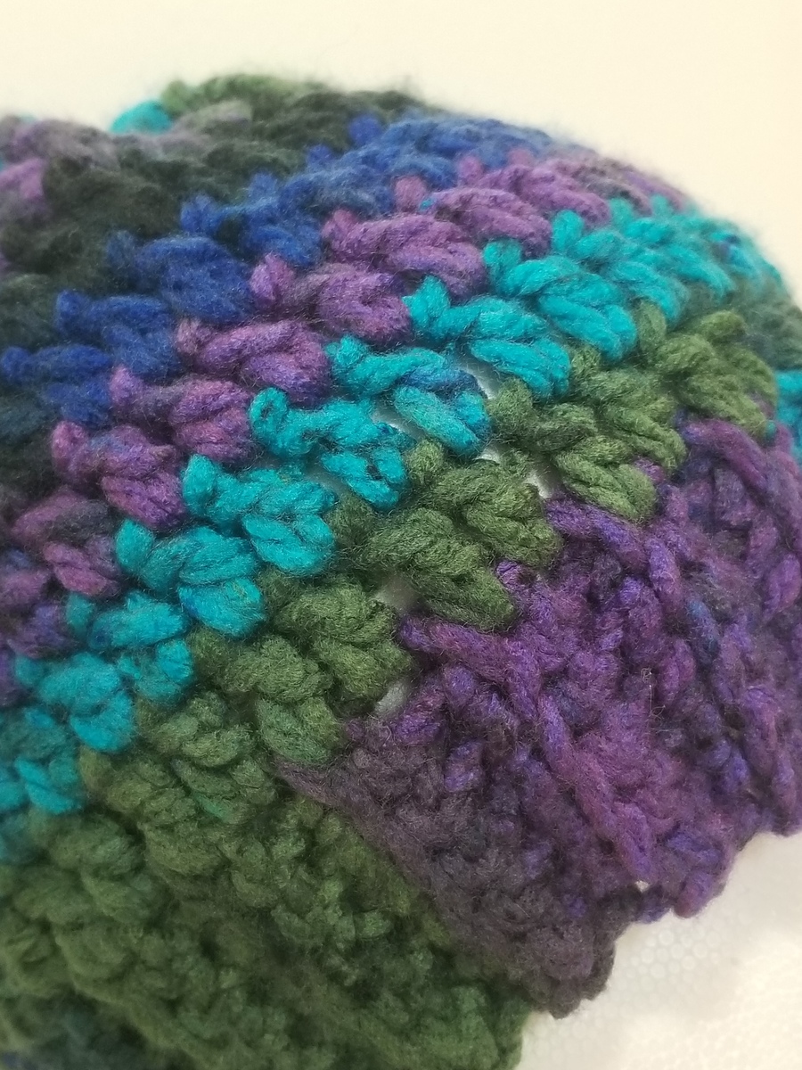 Handmade Crochet Chunky Beanie Hat in Northern Lights Color
