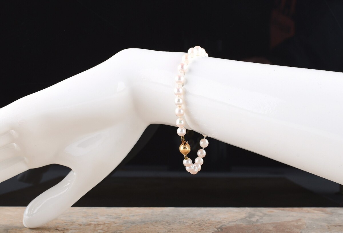 *Rosaline Japanese Akoya Pearl Bracelet 18k Yellow Gold 7.25"