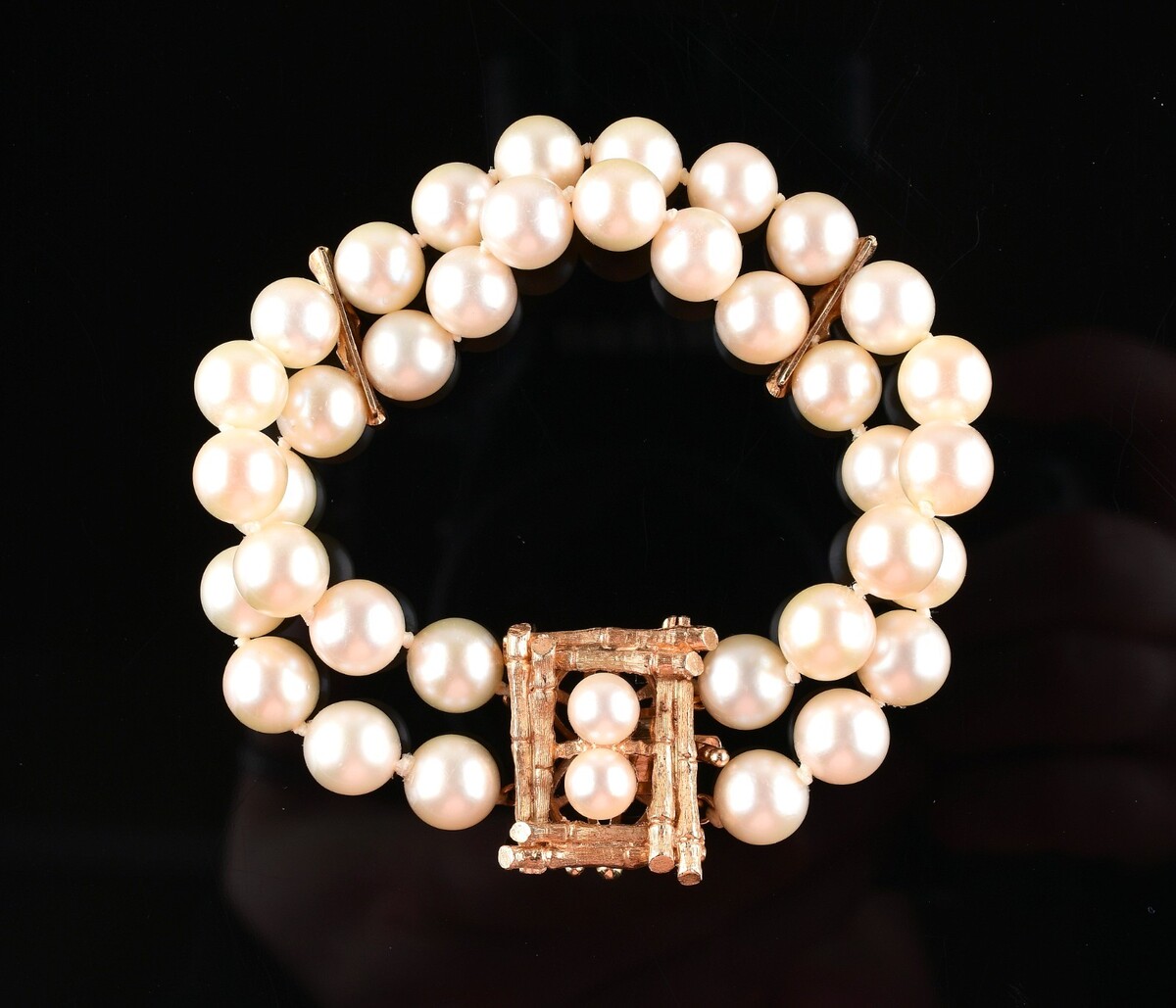 *Ivory 7.5mm Akoya Pearl 2-Strand Bracelet 14k Yellow Gold Lock 5.75"