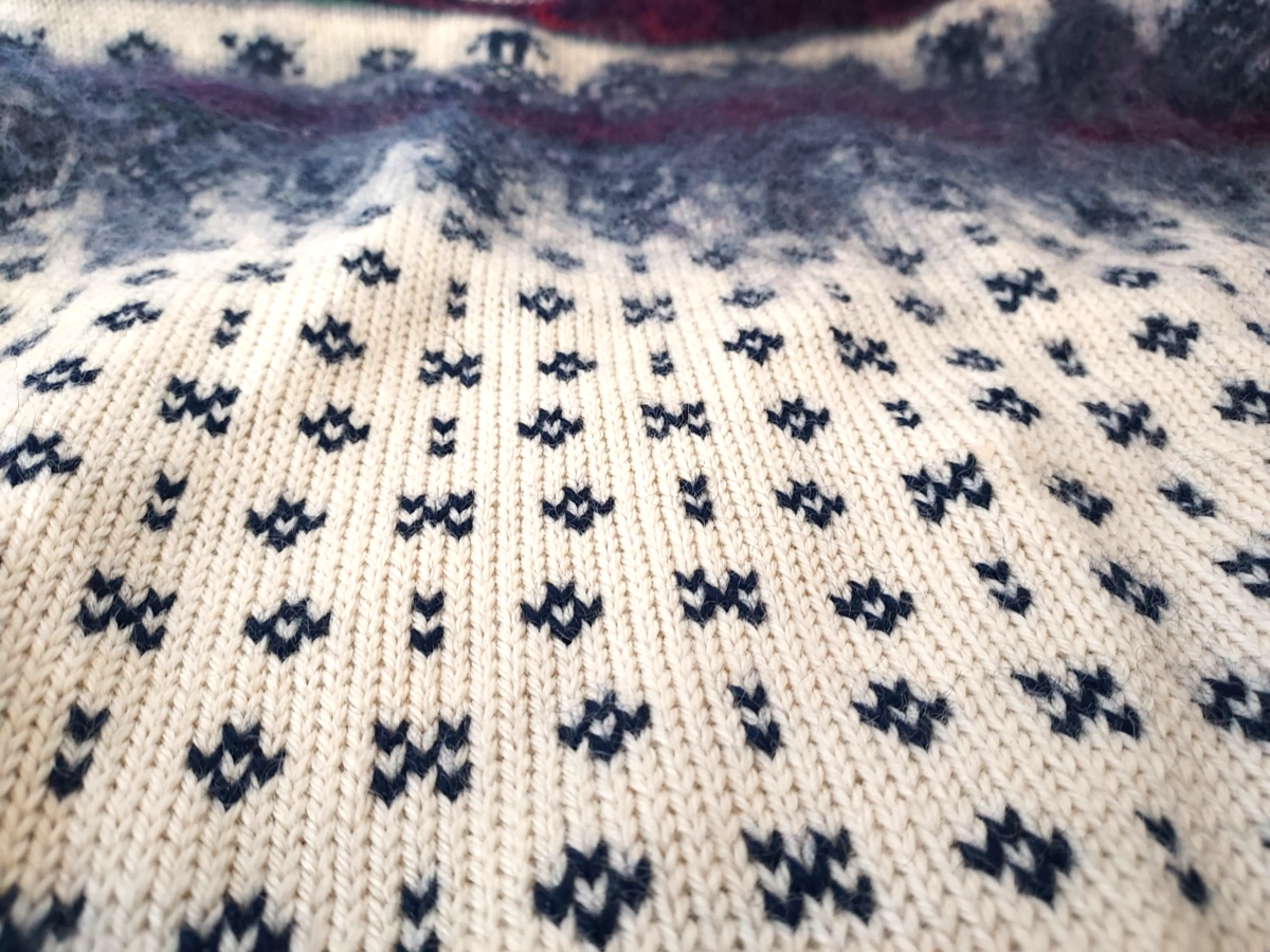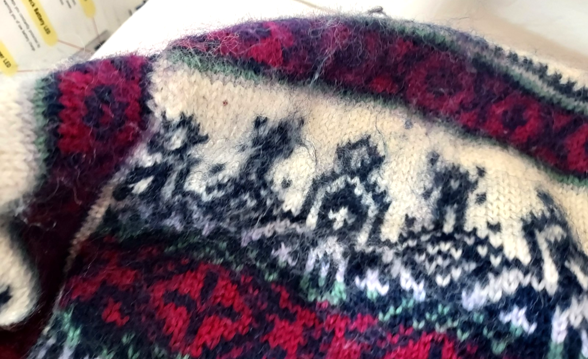 Note: some unraveling (holes) and fuzziness of colors on the back. Please See all pictures carefully. Can probably be repaired I?m just not a knitter.