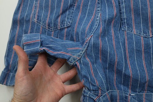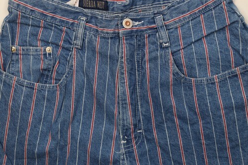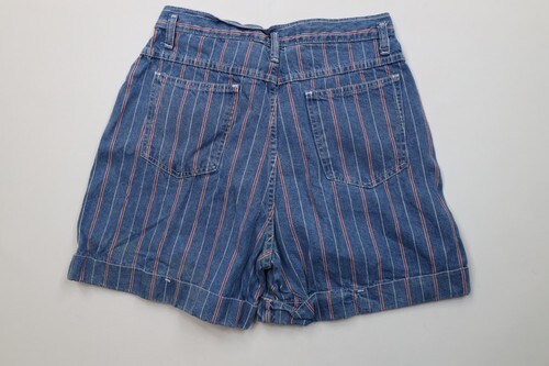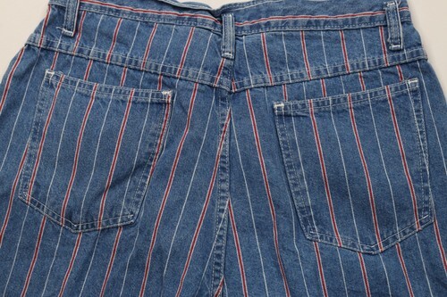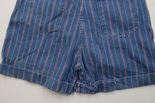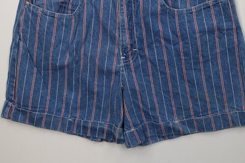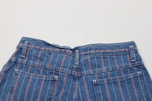 Vintage 90s Streetwear Womens 12 Distressed Cuffed Striped Denim Jean Shorts