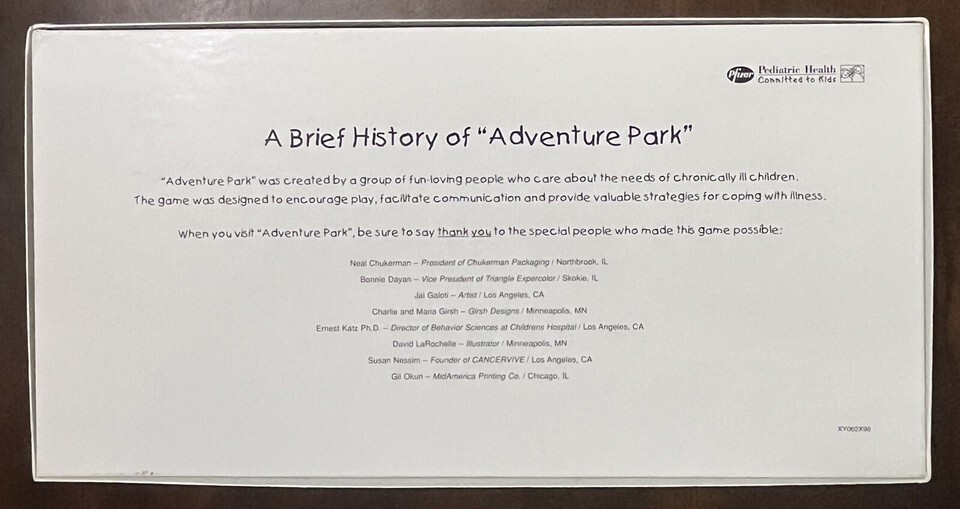 ADVENTURE PARK Pfizer Board Game - Helps Children & Families Cope With Illness