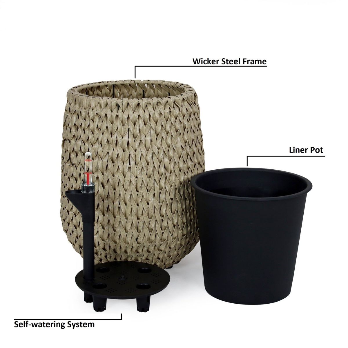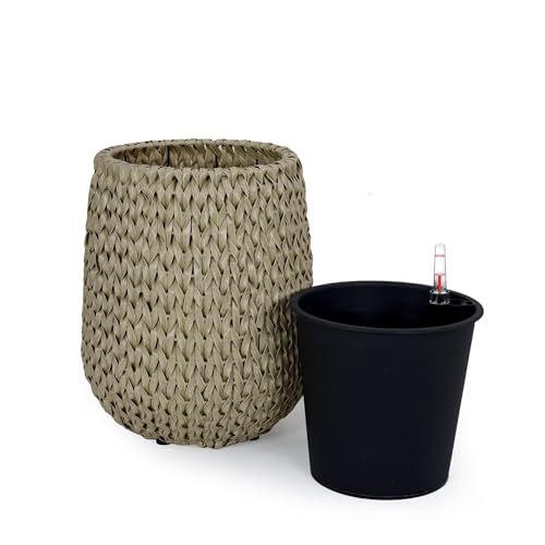 Catleza 17.3" Self-Watering Wicker Planter - Garden Decoration Pot - Beige - Rou