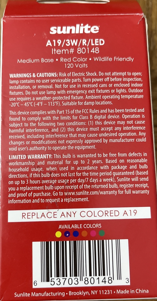 This LED bulb is frost finished and has a bulb life of 25,000 - 29,999 hours. It comes in a red color and is lead-free (RoHS) and frosted. The bulb shape is standard with an output voltage of 120V and an amperage of 3A. Its lighting technology is LED, making it perfect for those who want to go green.