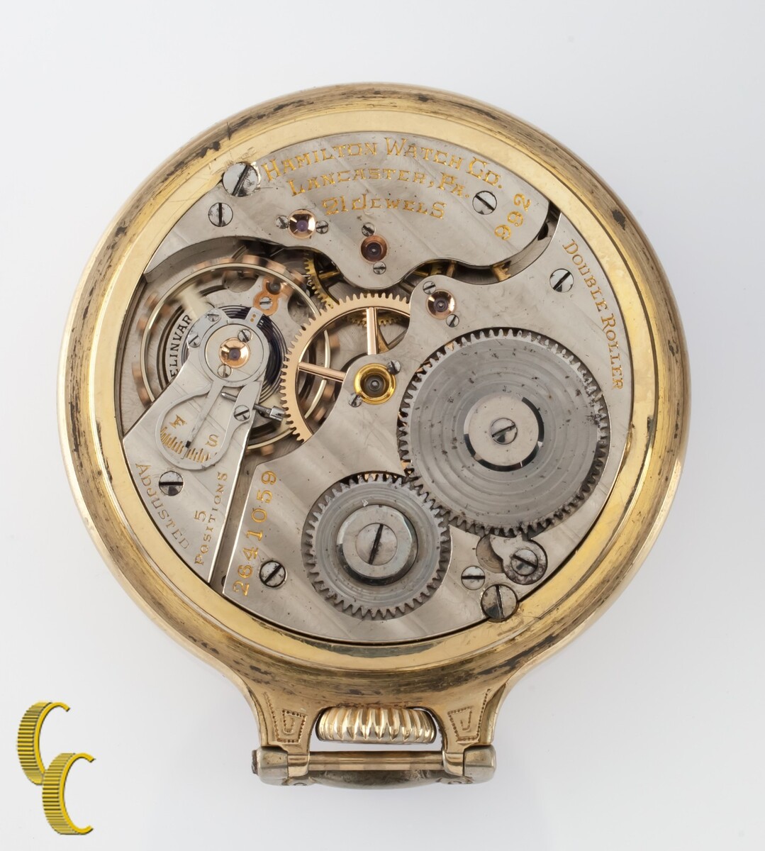 Hamilton Cara Abierta Oro Llenado Antiguo Bolsillo Reloj Grado 992 16S 21 Joya
