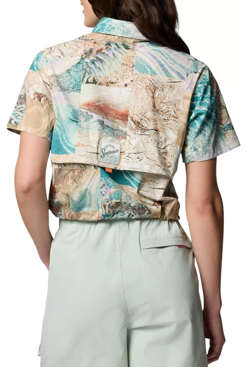 Columbia Women's Cove Beach Woven Cropped Short Sleeve Shirt Coastal Small
