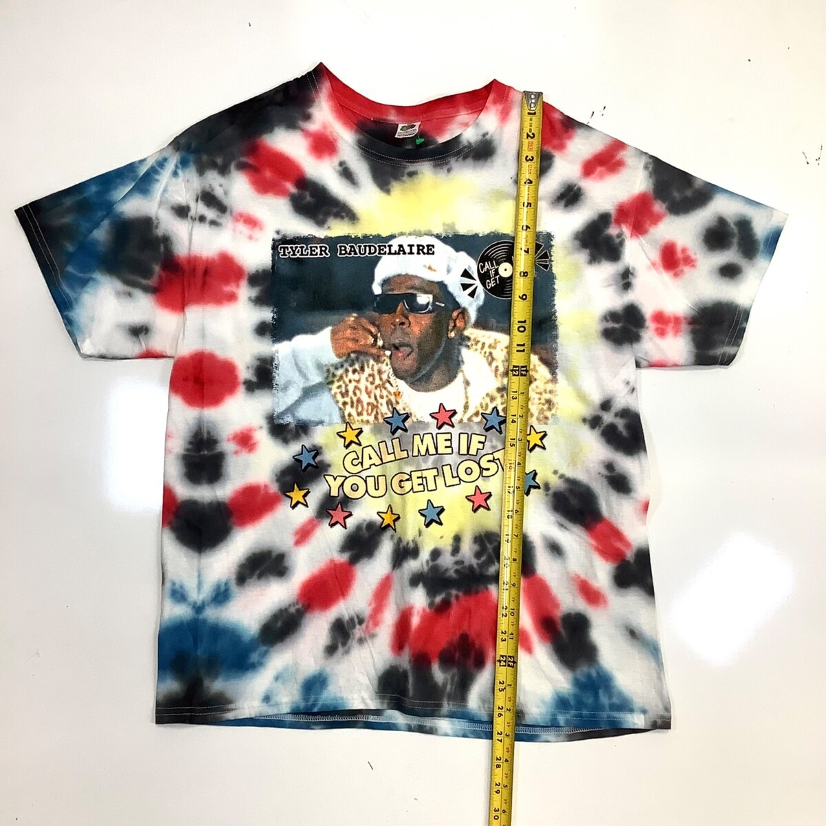 Tyler the Creator Baudelaire Call Me If You Get Lost Tye-Dye Tour T-Shirt Mens L. Very good overall condition. Please see all photos. Photos include measurements for armpit to armpit and for top of shoulder to bottom of T-shirt.
