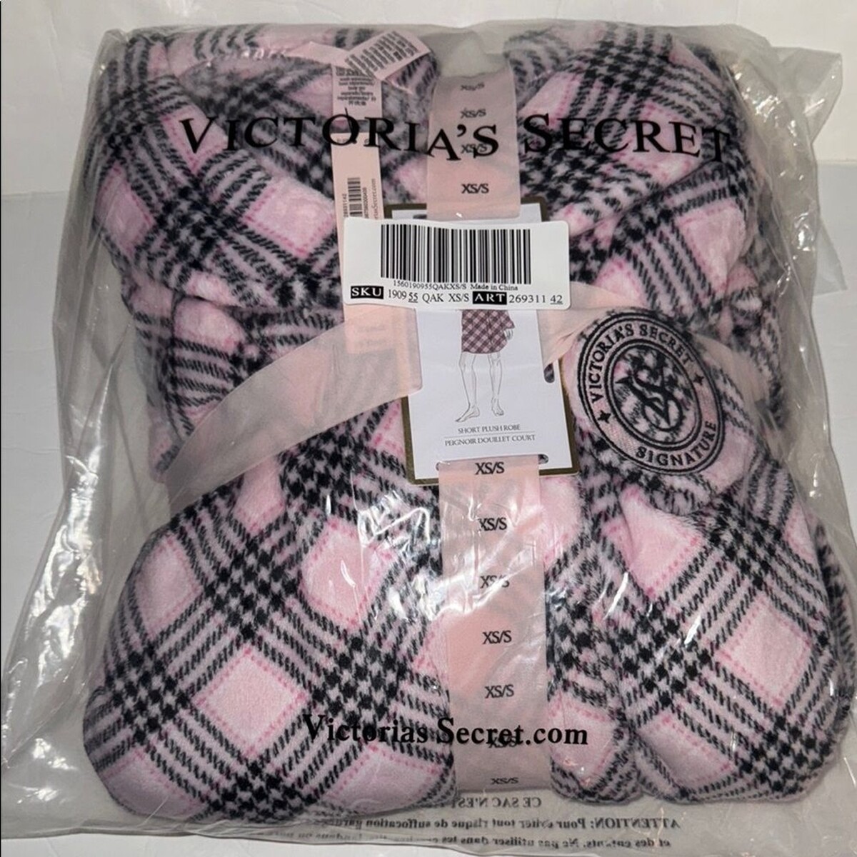 NWT Victoria's Secret Short Cozy Plush Robe Pretty Blossom Fave Plaid XS/S