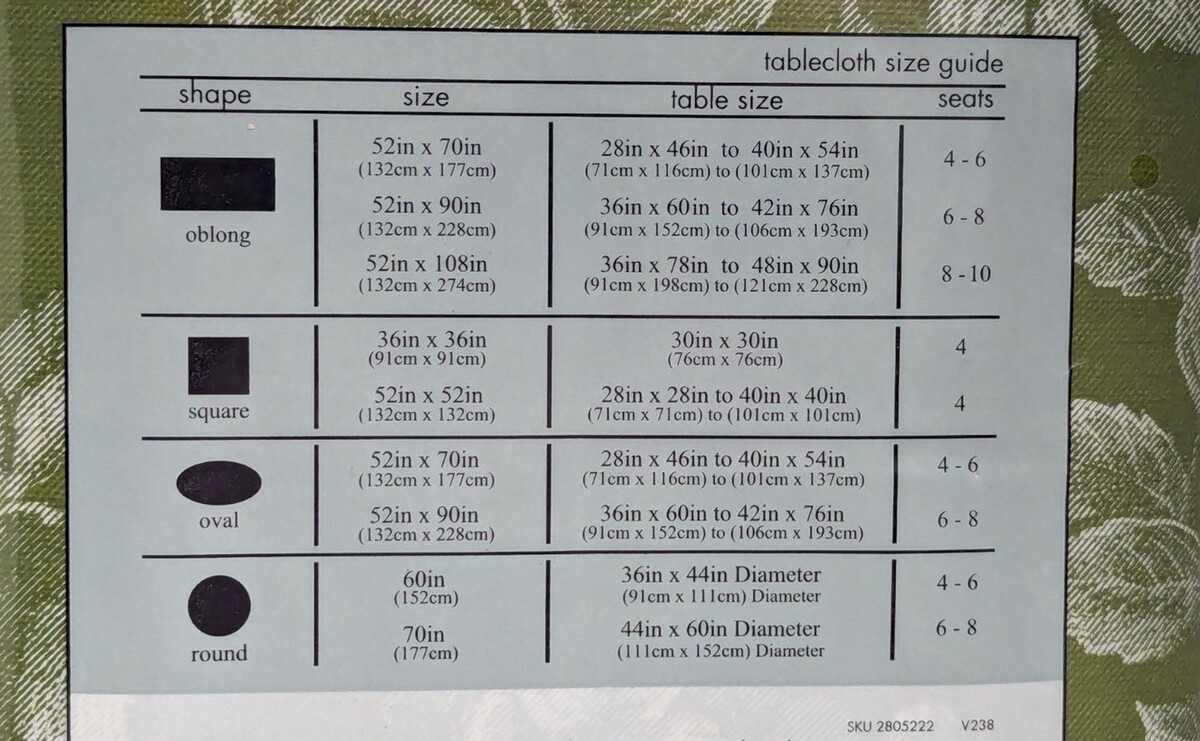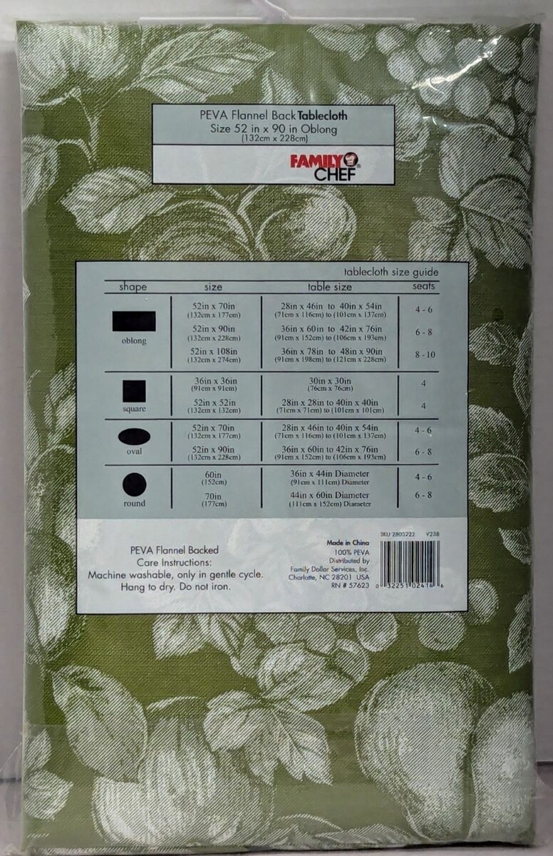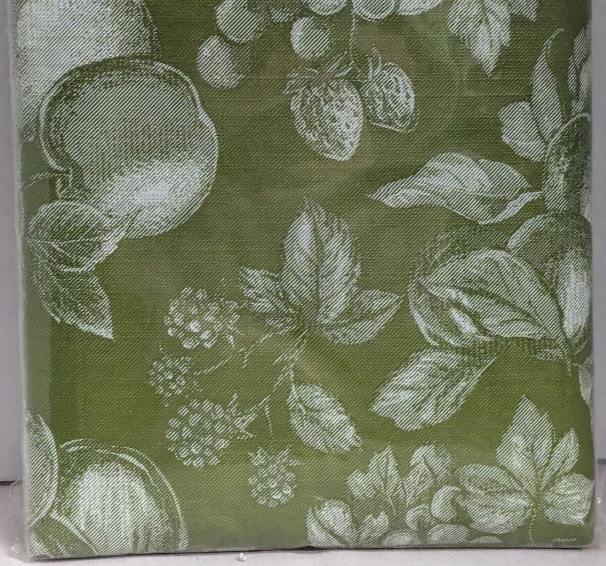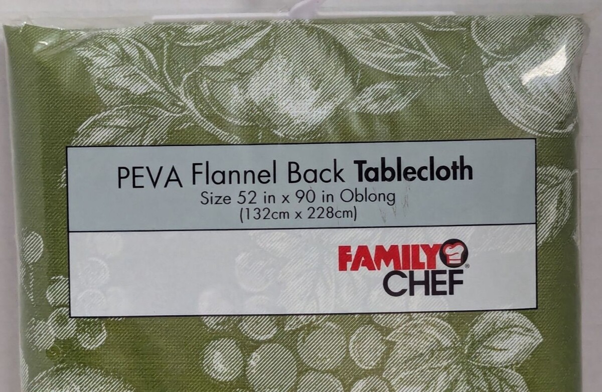 Green White Fruit PEVA Tablecloth 52 x 90-in Flannel Backing Kitchen Gift NEW