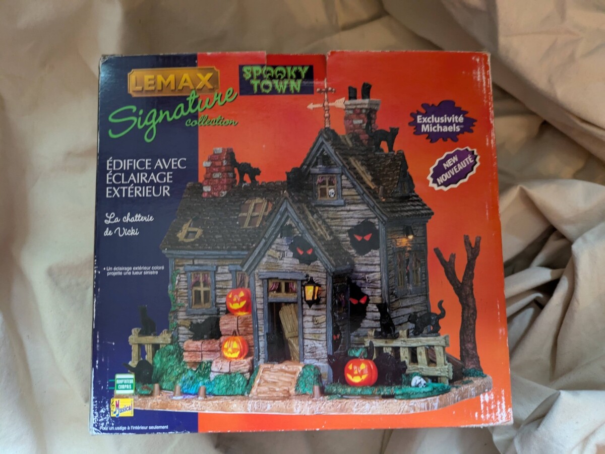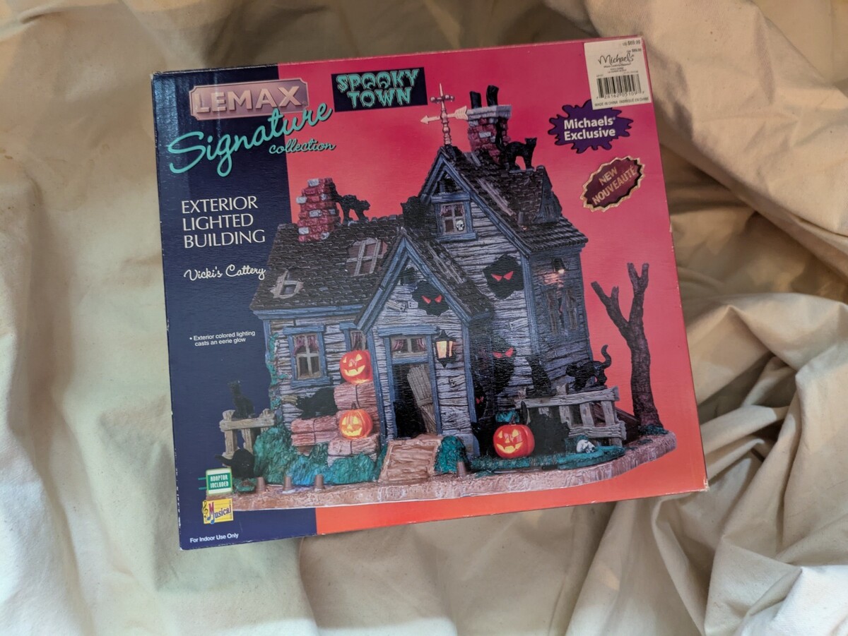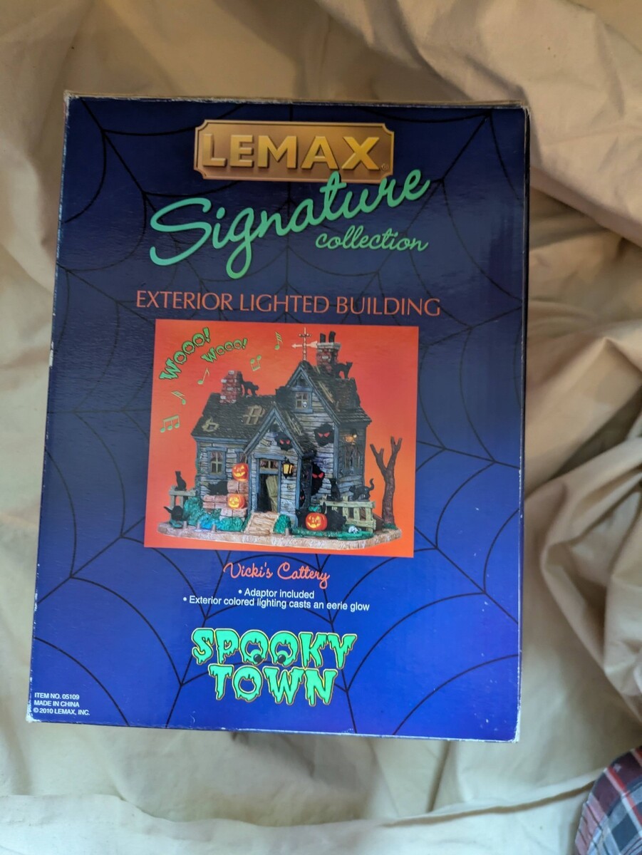 2010 Lemax Effrayant Town Vicki's Cattery Feux & Son Travail Boîte Abandonné