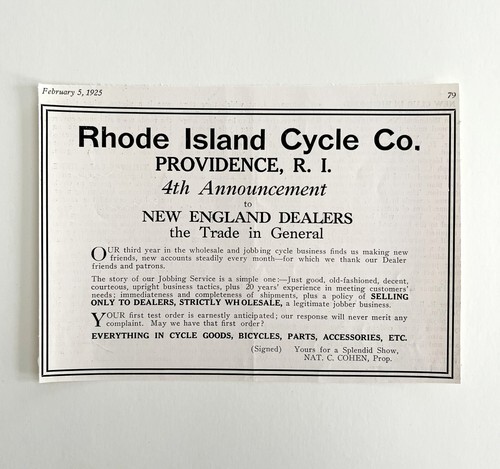 Rhode Island Cycle Co 1925 Advertisement and 45 similar items