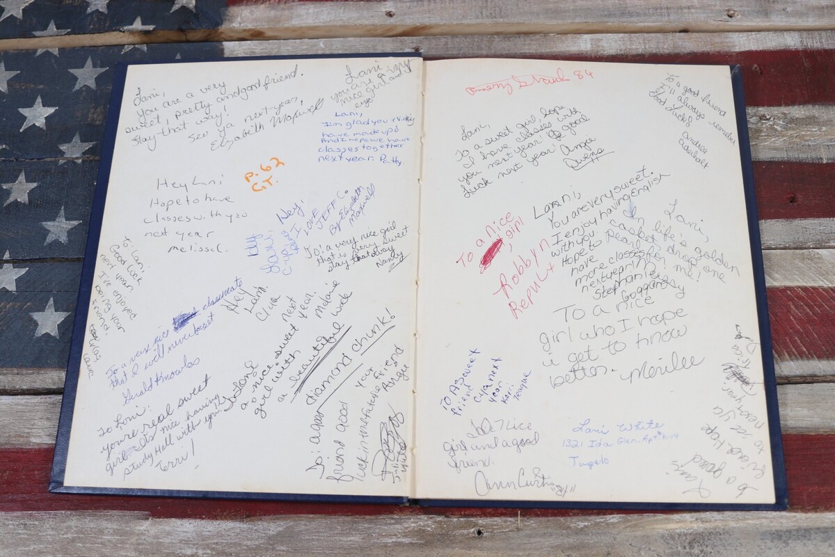 The product is a vintage yearbook from Milam Junior High School in Tupelo, Mississippi, dating back to the years 1983-1984. Signed by the students, this collectible item provides a glimpse into the past education system and offers a unique piece of historical memorabilia for collectors or former students of the school. With its nostalgic content and signatures, this yearbook serves as a special memento from the 1980s era of American education.