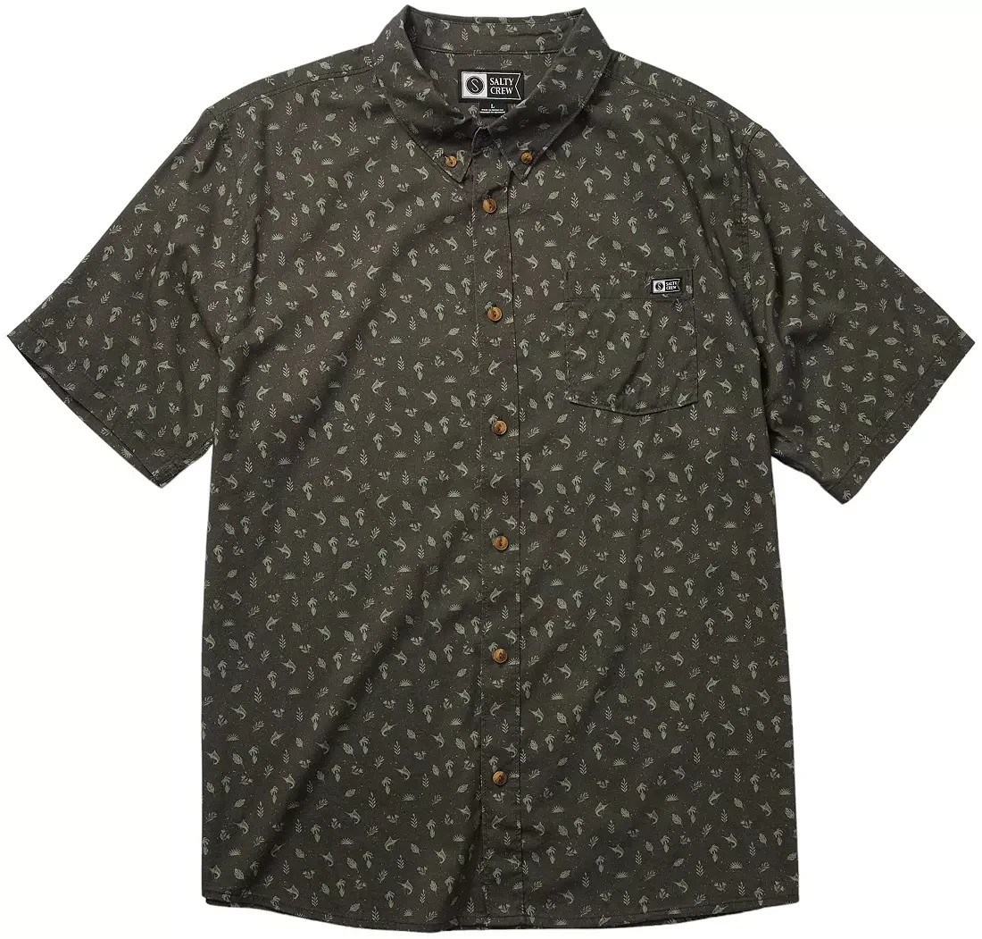 Salty Crew Men's Coastal Woven Charcoal Short Sleeve Button up Size XL Fish