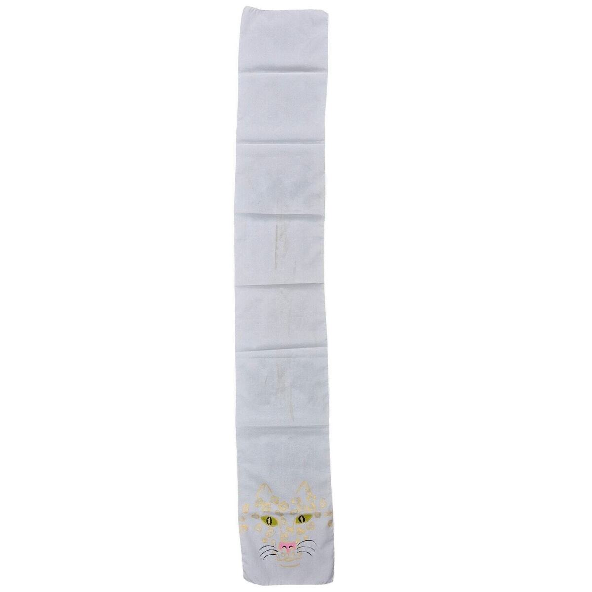 vintage White Hand Painted Kitty Cat Leopard Scarf 1970s Acetate 53" long