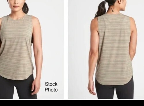 NWT Athleta Women’s Cloudlight Striped Muscle Tank Medium Olive NEW With TAGS