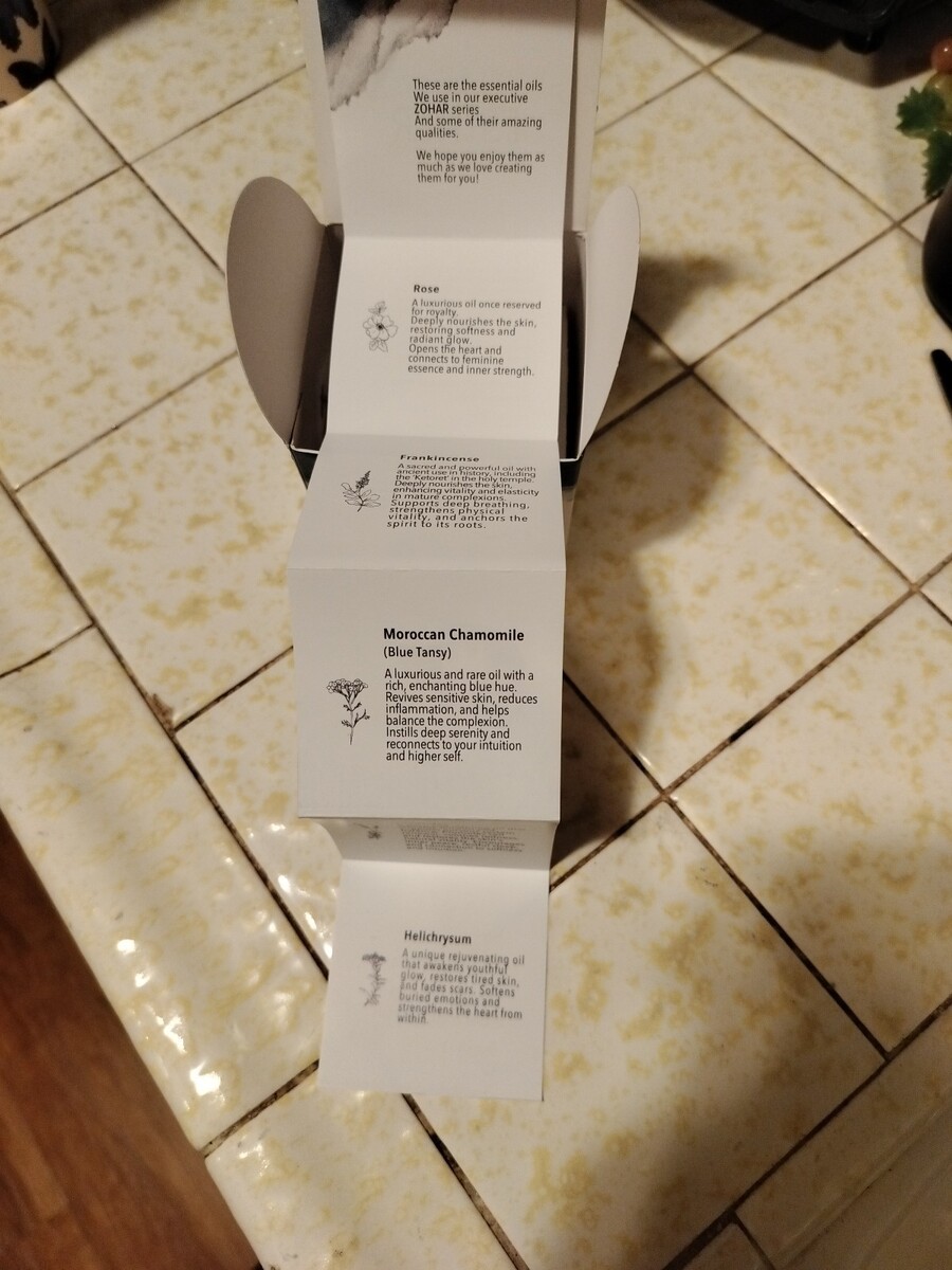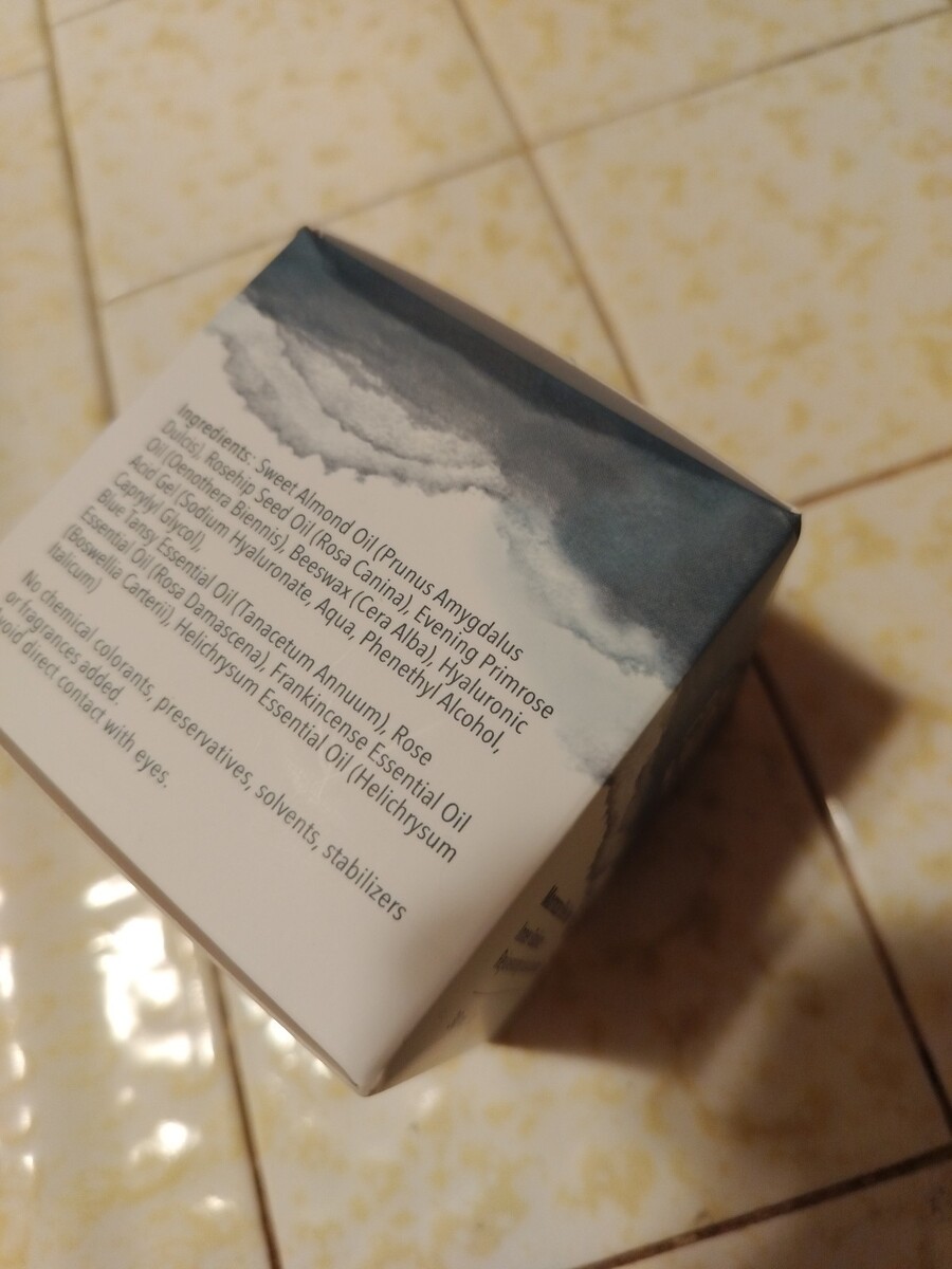 Ingredients: Sweet almond oil (Prunus Amygdalus Dulcis), rosehip seed oil (Rosa Canina), evening primrose oil (Oenothera Biennis), beeswax (Cera Alba), hyaluronic acid gel (Sodium Hyaluronate, Aqua, Phenethyl Alcohol, Caprylyl Glycol), blue tansy essential oil (Tanacetum Annuum), rose essential oil (Rosa Damascena), frankincense essential oil (Boswellia Carterii), helichrysum essential oil (Helichrysum Italicum).