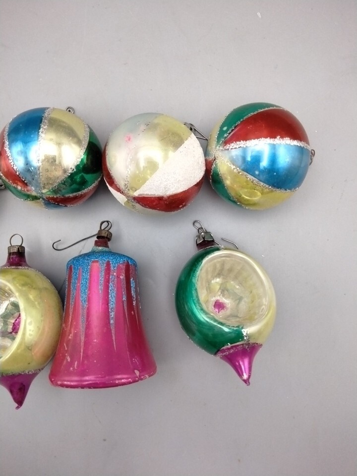 Vintage 1950’s Multicolor Handblown Mercury Glass Ornaments Lot 8 Poland