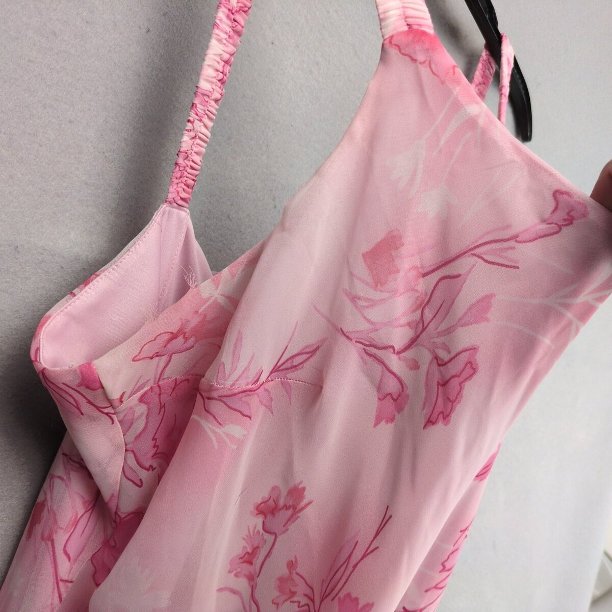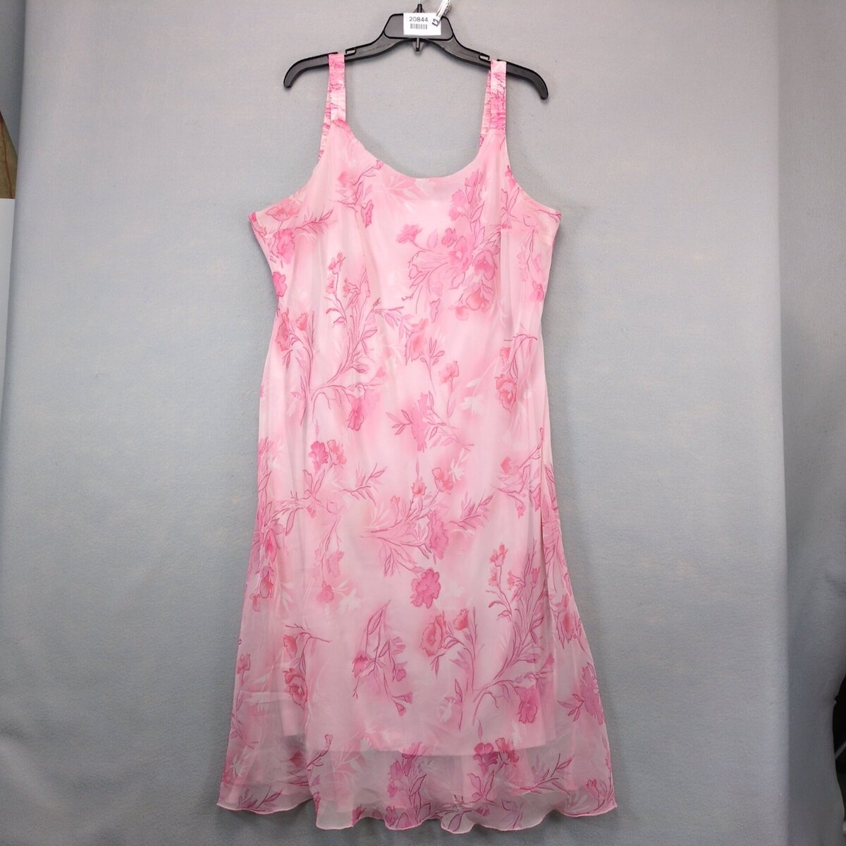 Dress Barn Woman 20W Pink Floral Maxi Sun Dress Sheer Overlay Elastic Straps Y2K