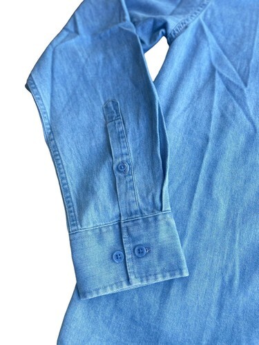 This Five Four denim button-down shirt is a must-have for any stylish man's wardrobe. The long-sleeved shirt is perfect for any casual occasion and comes in a size small. The shirt features a button-down collar and is made of high-quality denim fabric. It has a blue color that complements any outfit and is perfect for men who enjoy a classic look. The shirt is new with tags and has not been worn before.