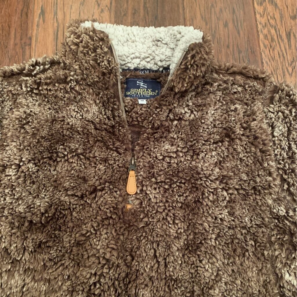 Simply Southern Womens Sherpa Fleece Jacket Brown White 1/4 Zip Mock Neck M