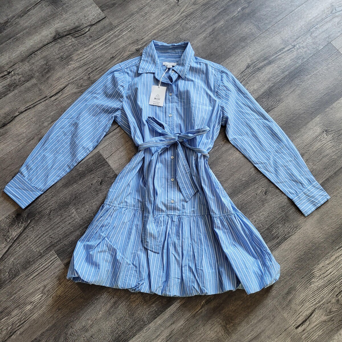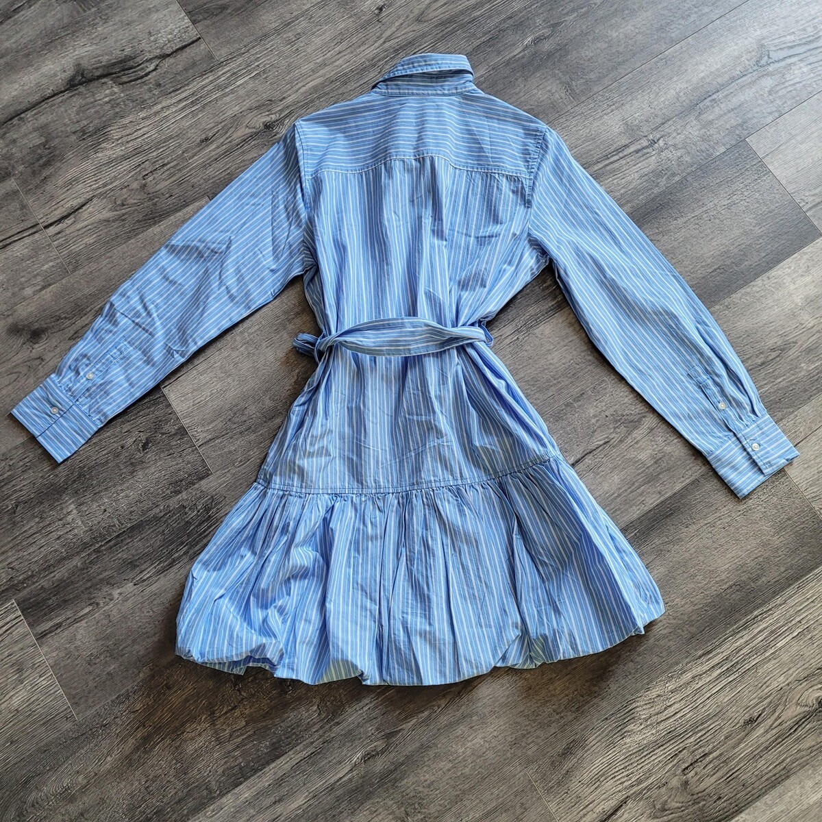 New Free Assembly Women's Belted Bubble 100% Cotton Mini Dress w/Long Sleeves Medium