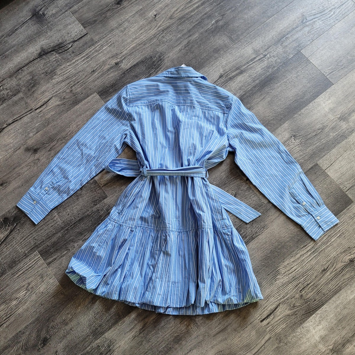 New Free Assembly Women's Belted Bubble 100% Cotton Mini Dress w/Long Sleeves Medium