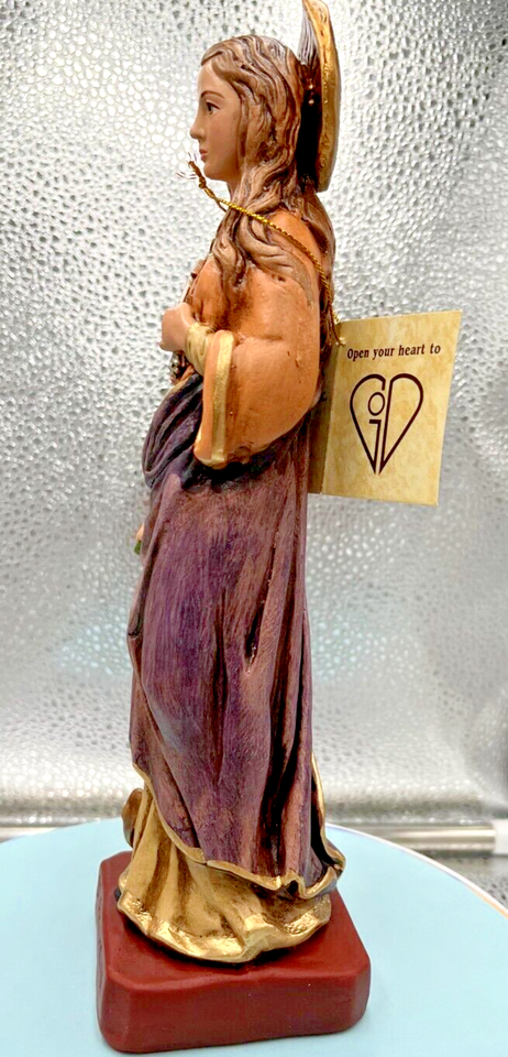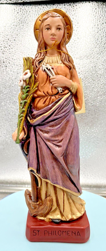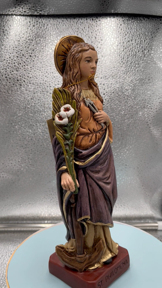 Your purchase is for a 10" statue of Saint Philomena, made of resin.