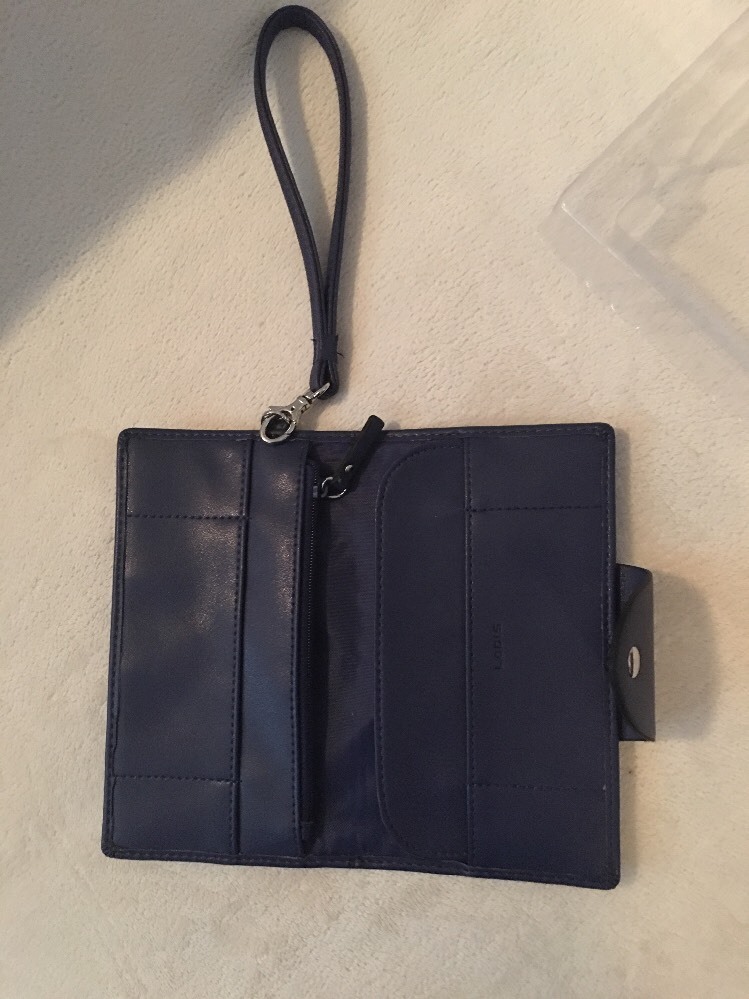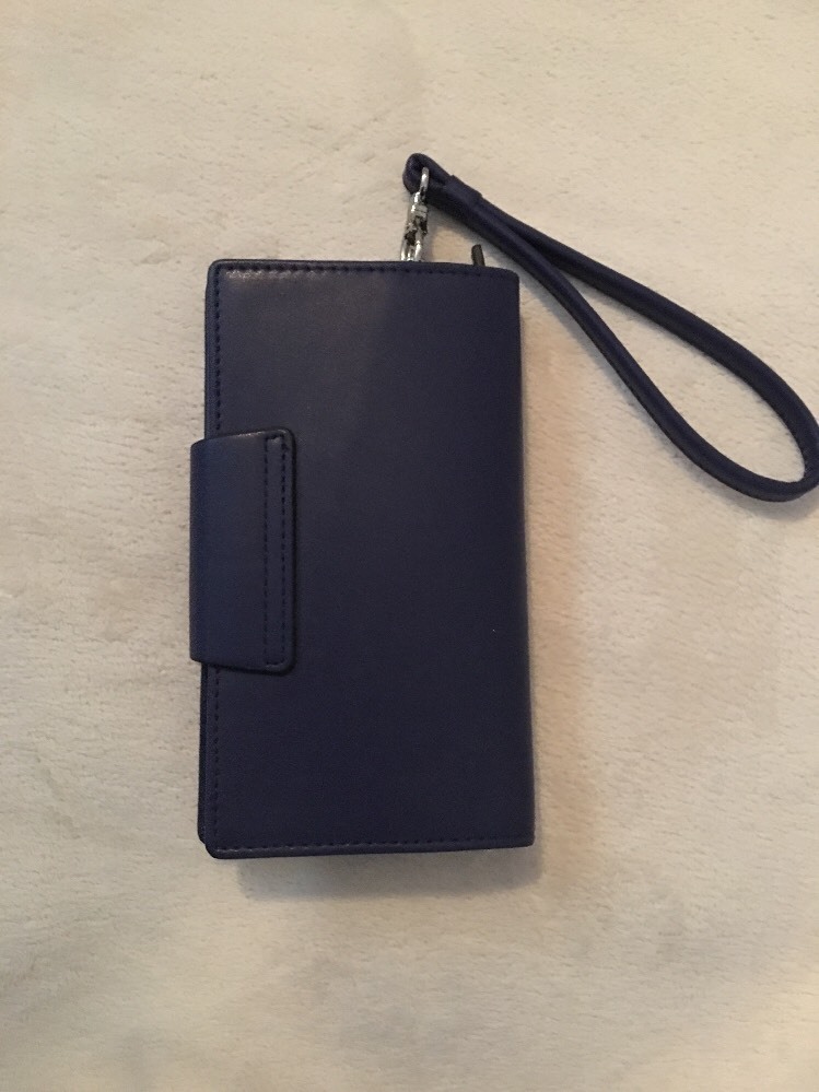 Lodis Leather Smartphone Wristlet /Wallet with universal charging stick navy new